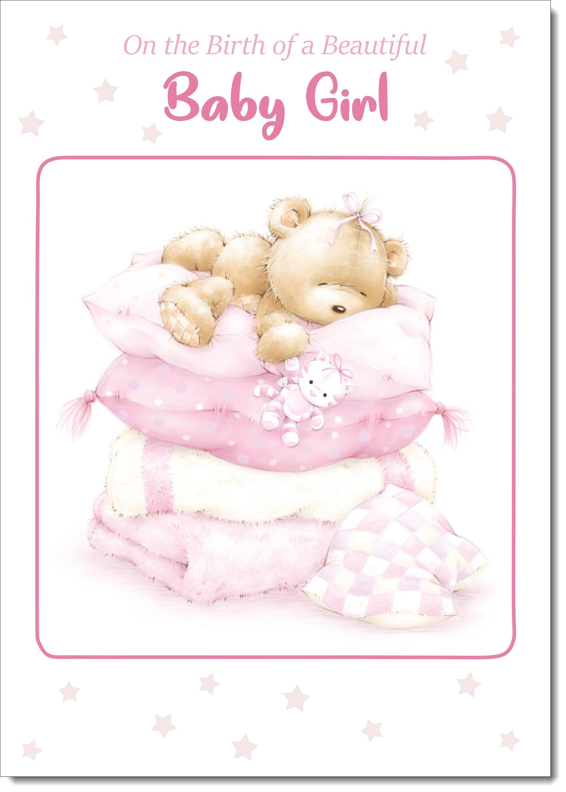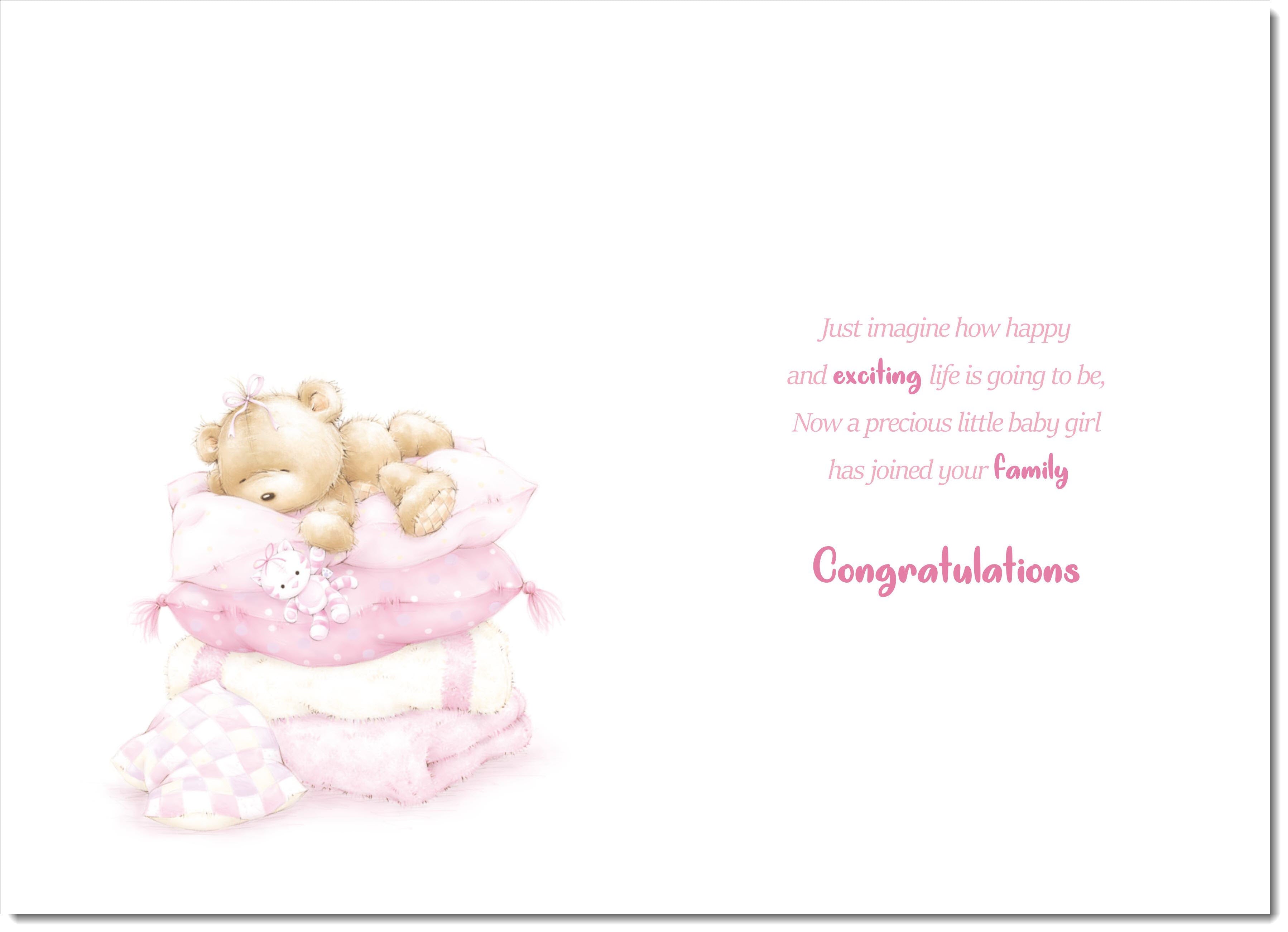 New Baby Girl Birth Congratulations Card Cute Teddy