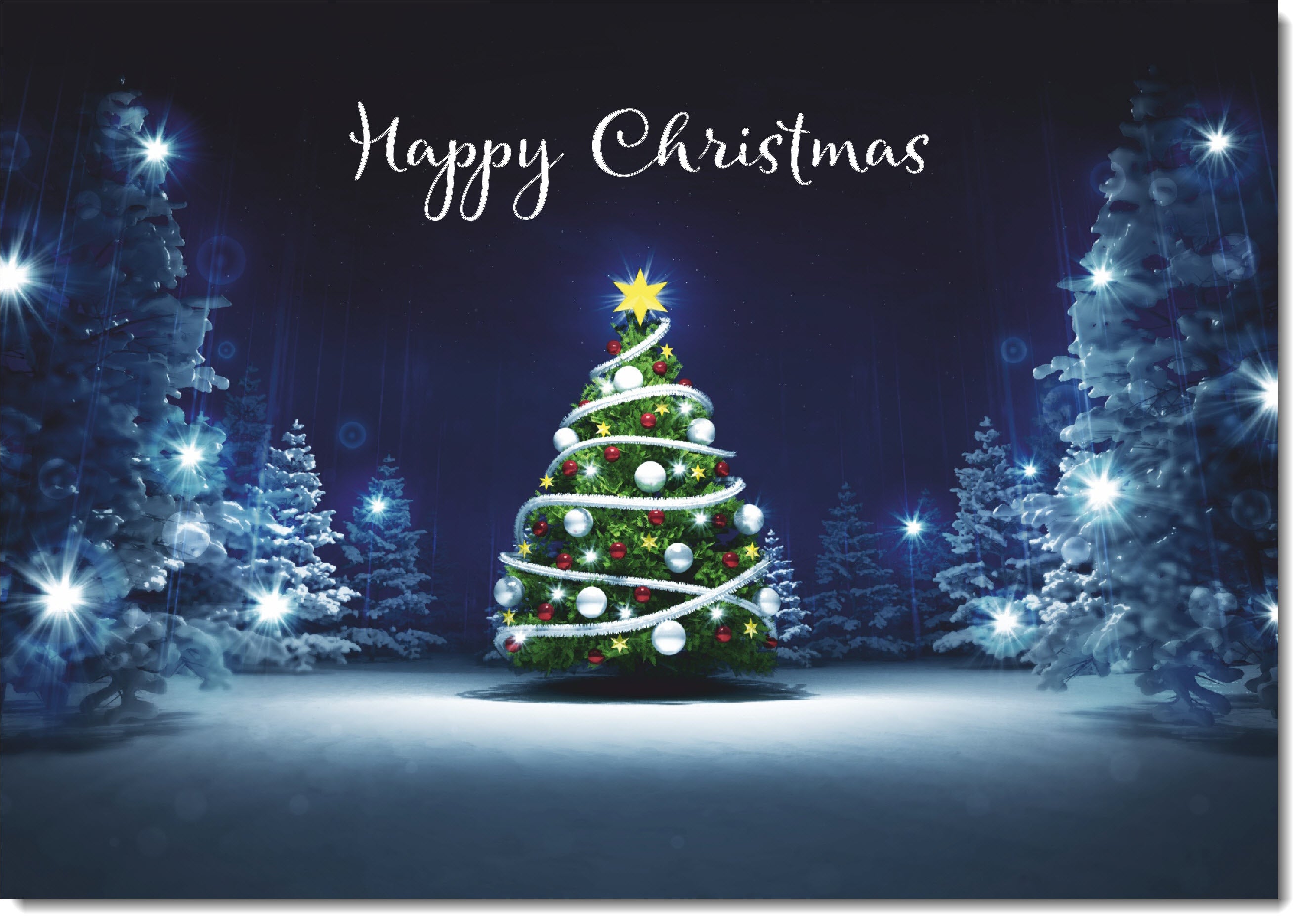 Happy Christmas Card Christmas Tree Lights in Dark Sky