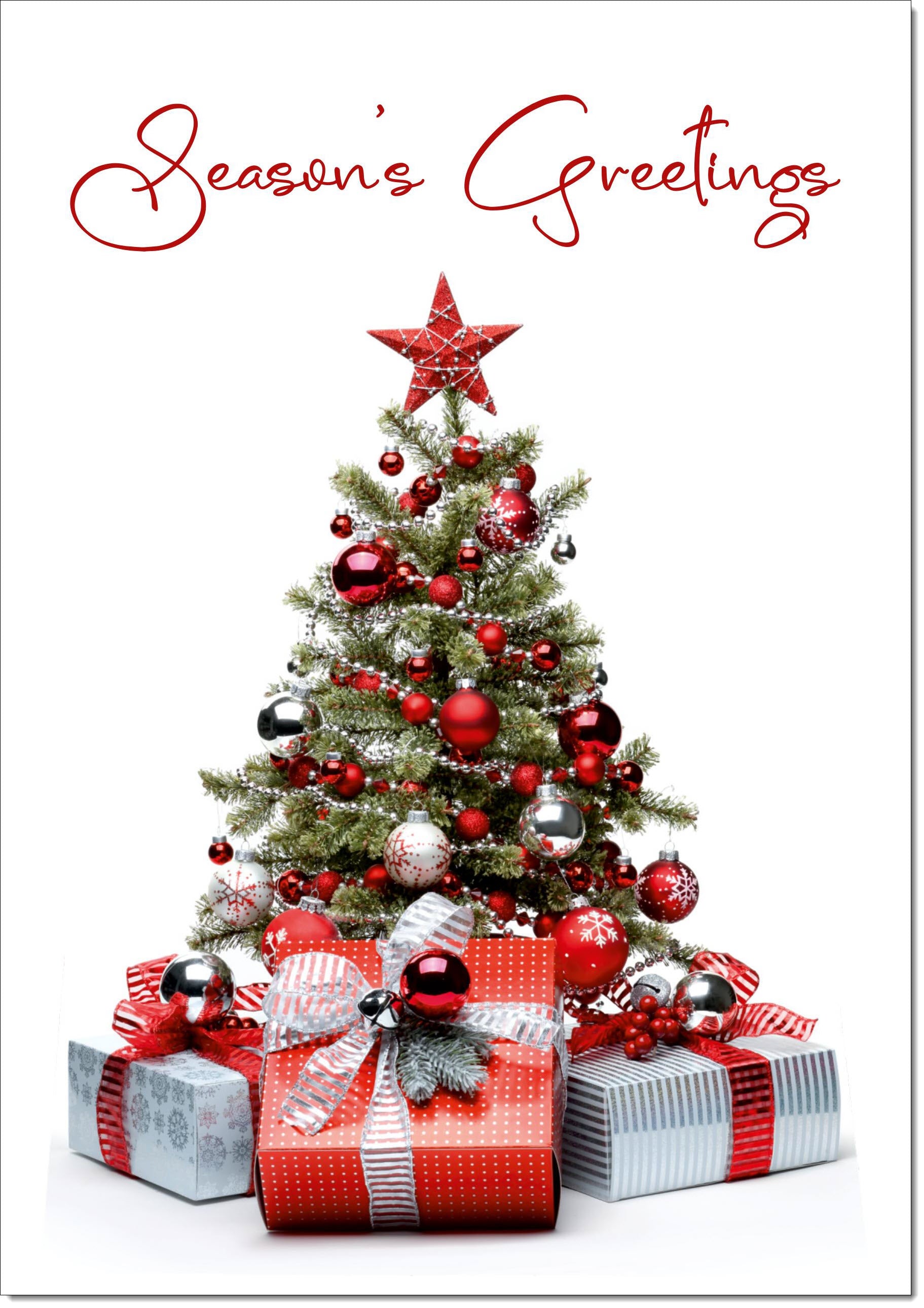 Seasons Greetings Christmas Card Christmas Tree and Parcels