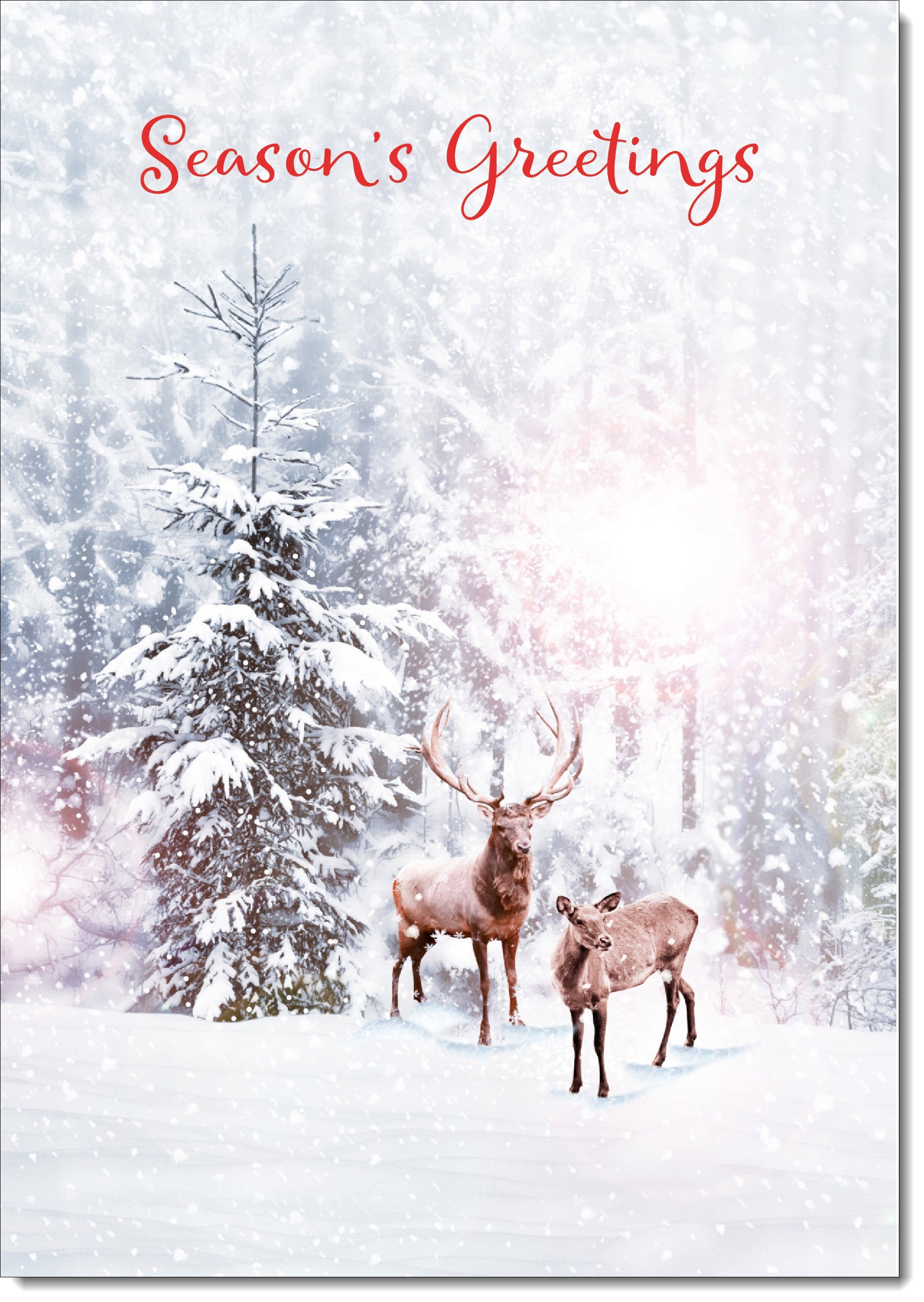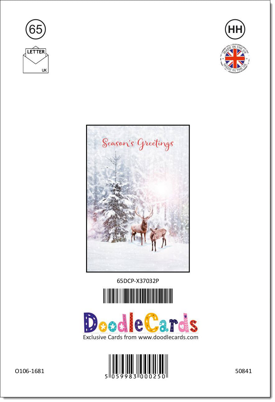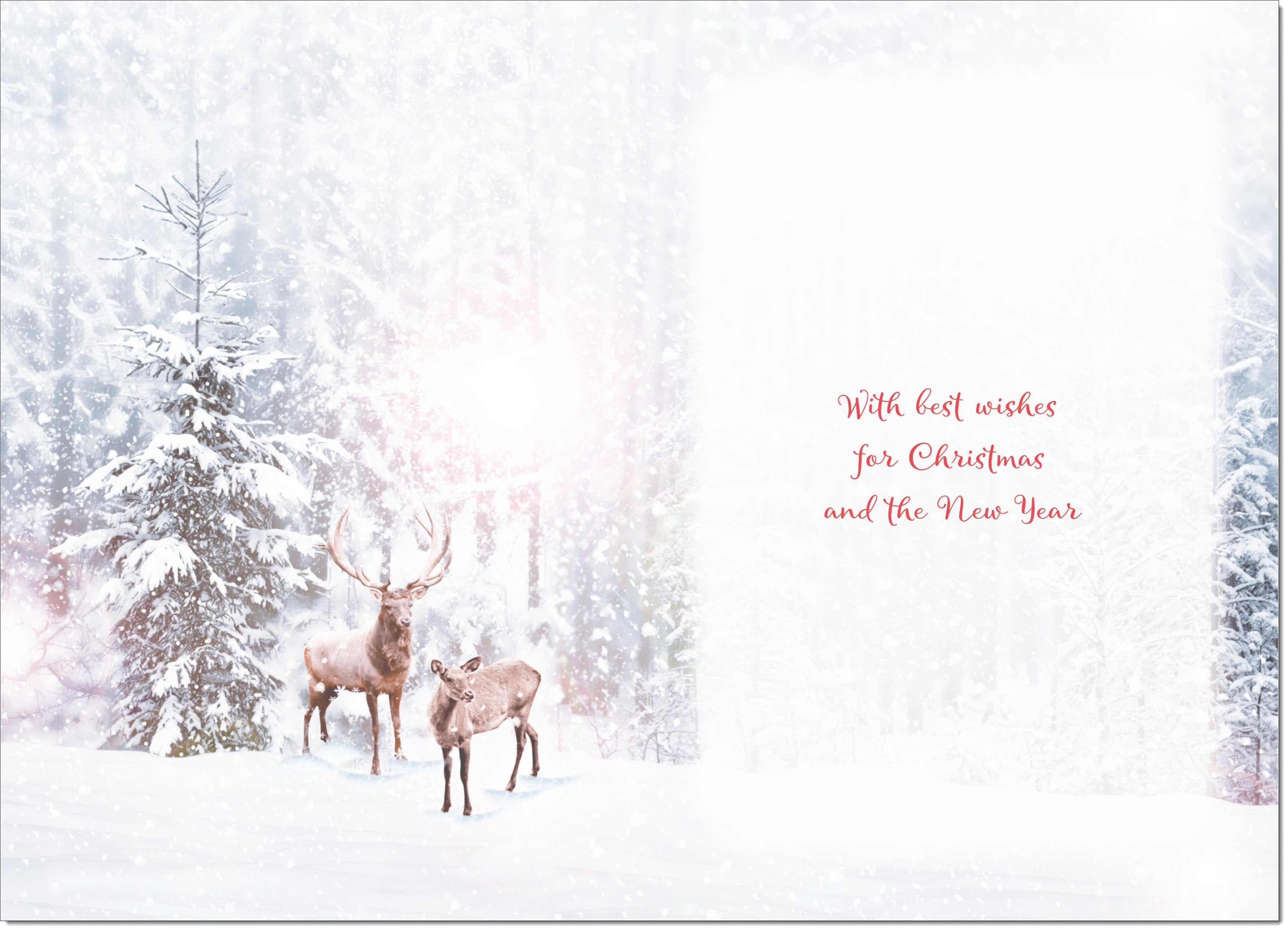 Seasons Greetings Christmas Card Stag and Doe in Snowy Forest