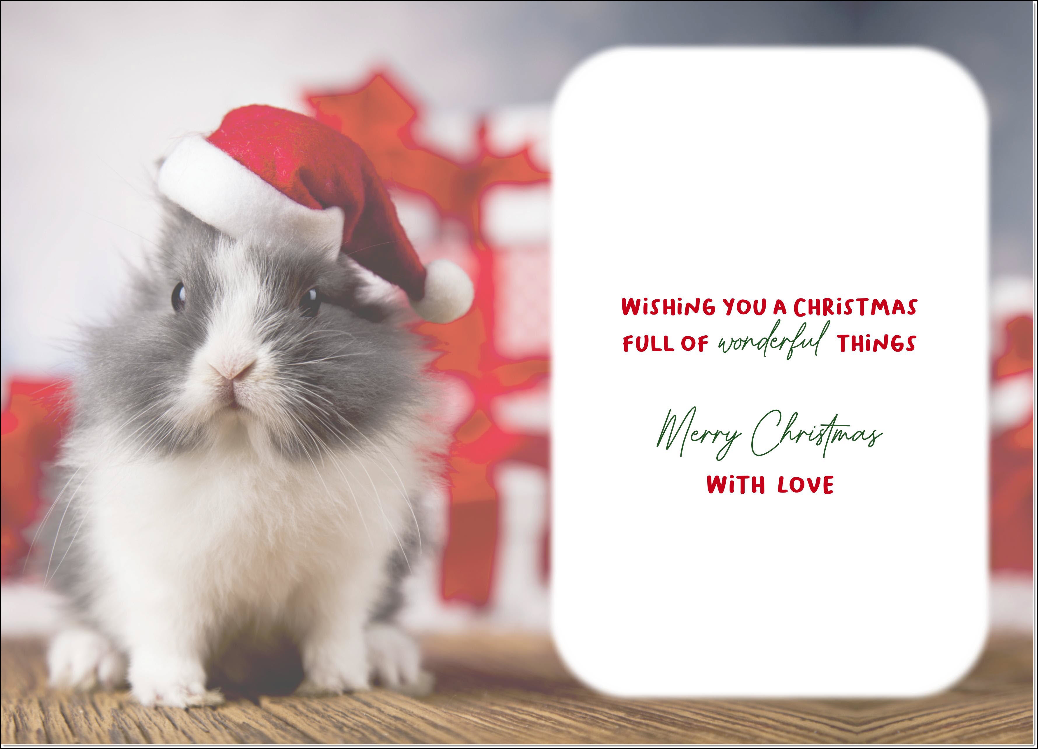 Merry Christmas Card Cute Santa Paws Rabbit Pet Christmas Hat