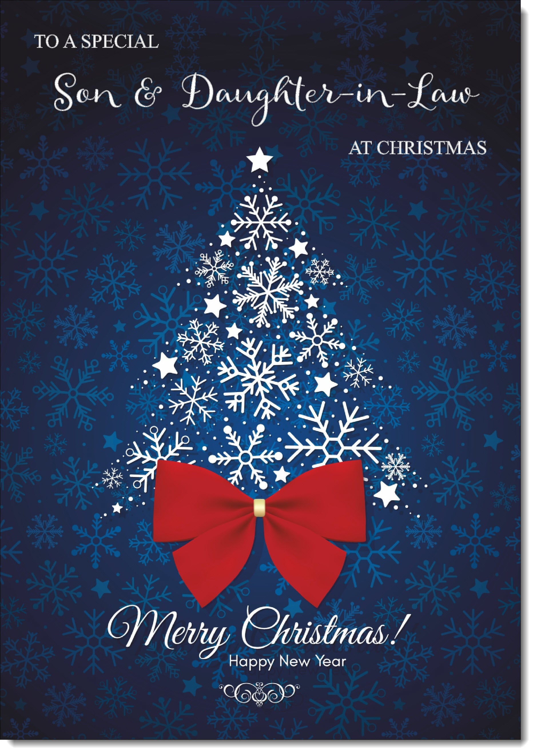 Son & Daughter-in-Law Christmas Card Blue Abstract Christmas Tree