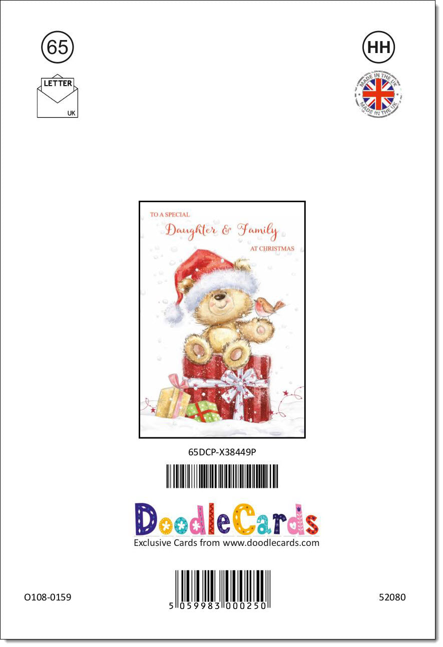 Daughter & Family Christmas Card Cute Bear on Parcel