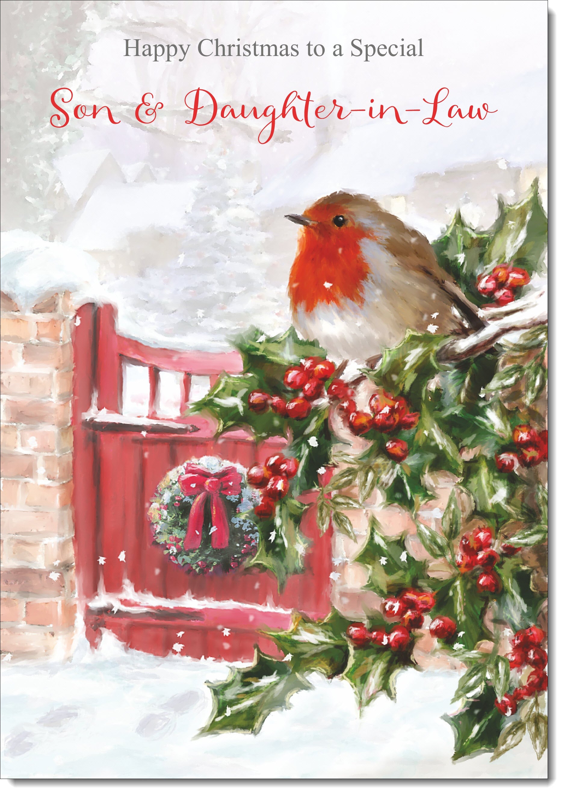 Son & Daughter-in-Law Christmas Card Robin on Holly Tree