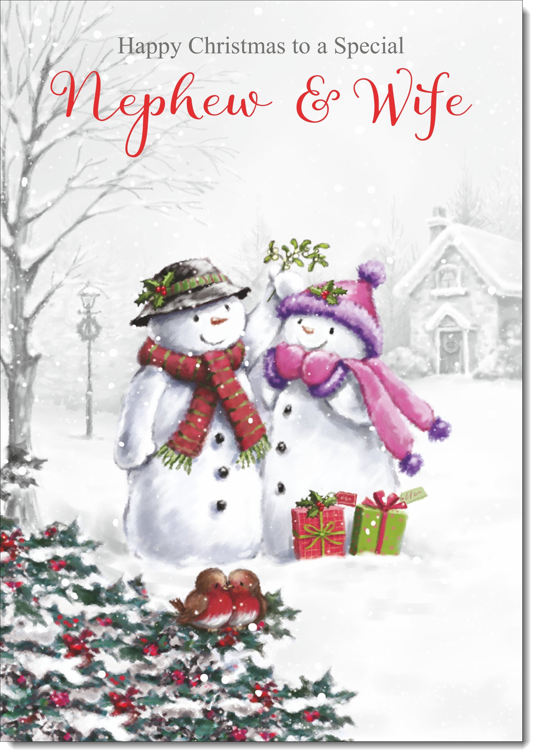 Nephew & Wife Christmas Card Snowman Couple