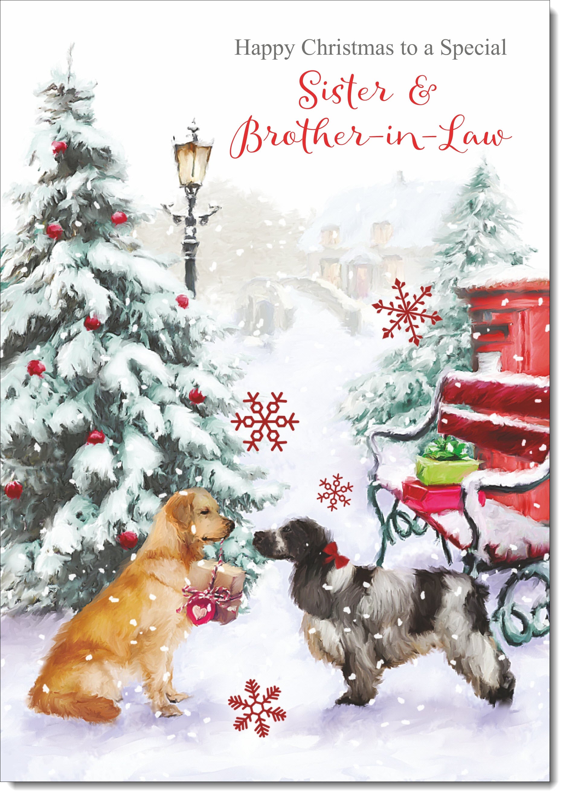 Sister & Brother-in-Law Christmas Card Two Dogs in Snow