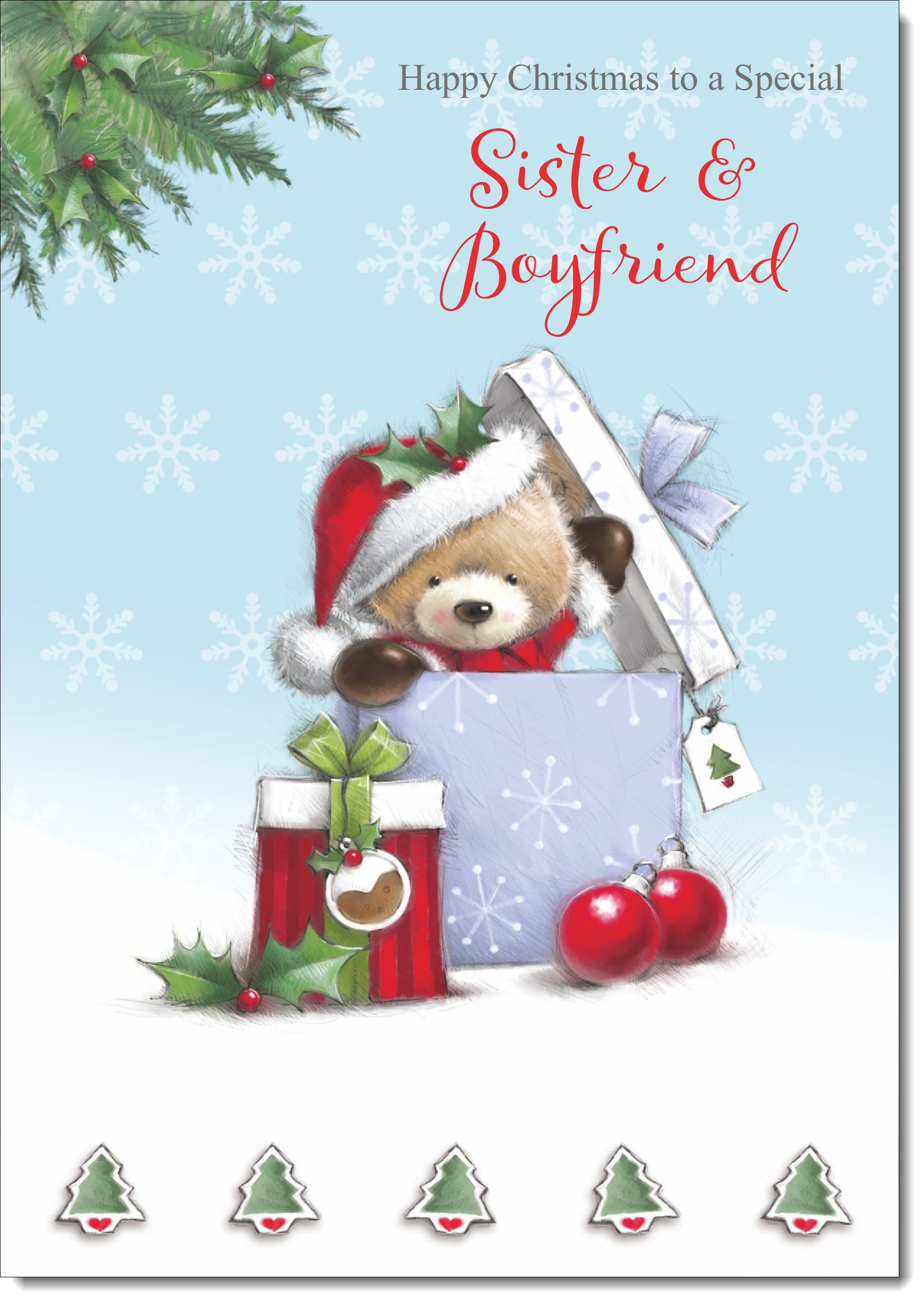 Sister & Boyfriend Christmas Card Cute Bear in Christmas Parcel