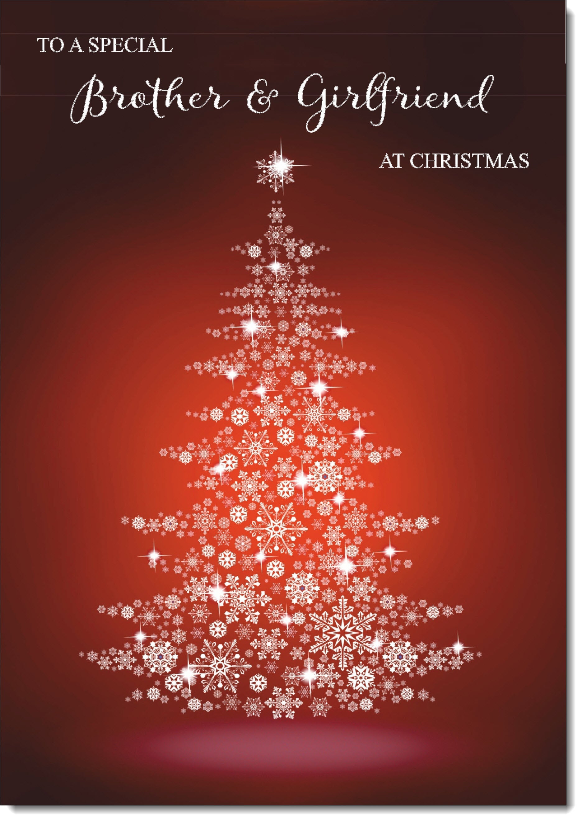Brother & Girlfriend Christmas Card Red Snowflake Christmas Tree