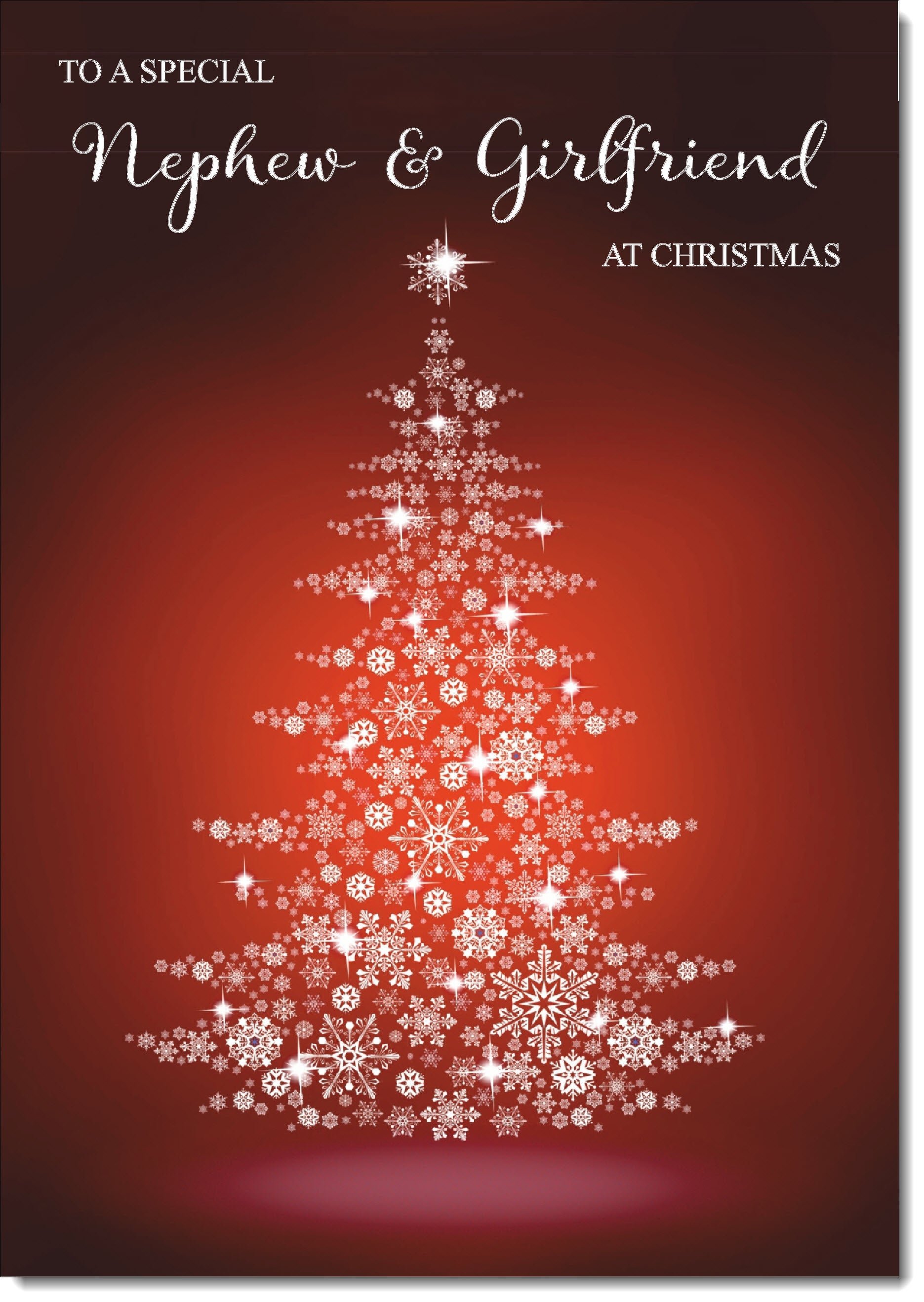 Nephew & Girlfriend Christmas Card Red Snowflake Christmas Tree