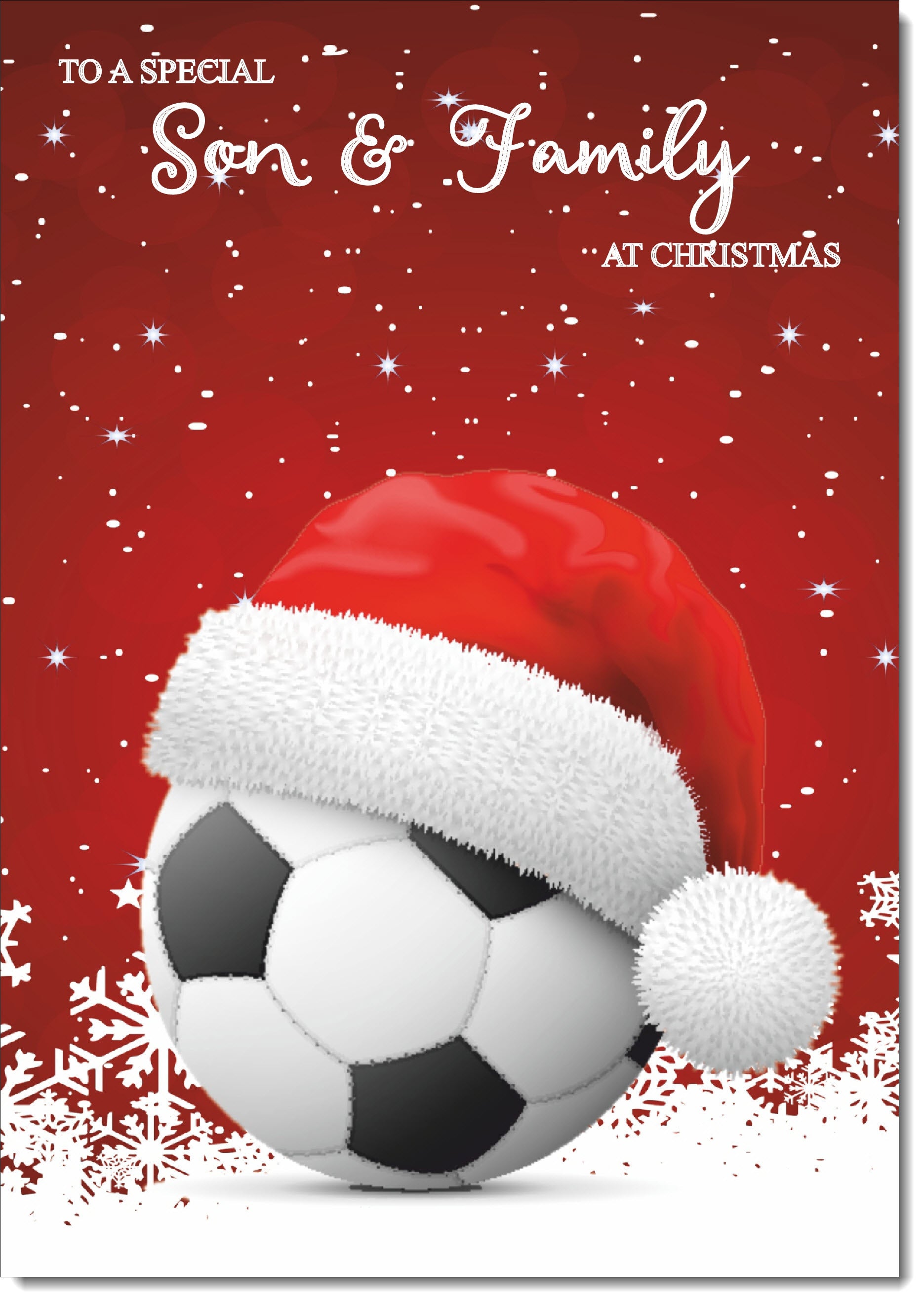Son & Family Christmas Card Santa Hat Football with Red Sky