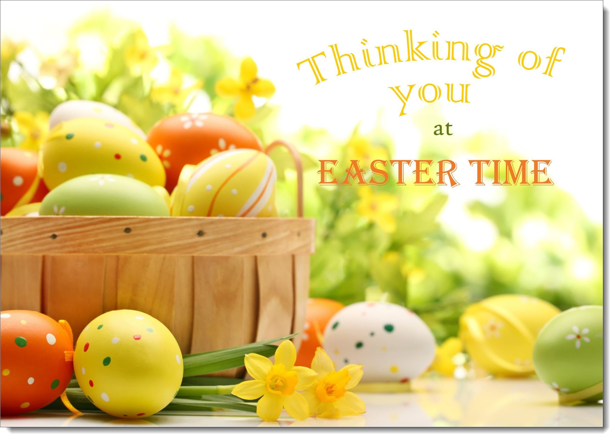 Thinking Of You Easter Card Egg Basket and Daffodils
