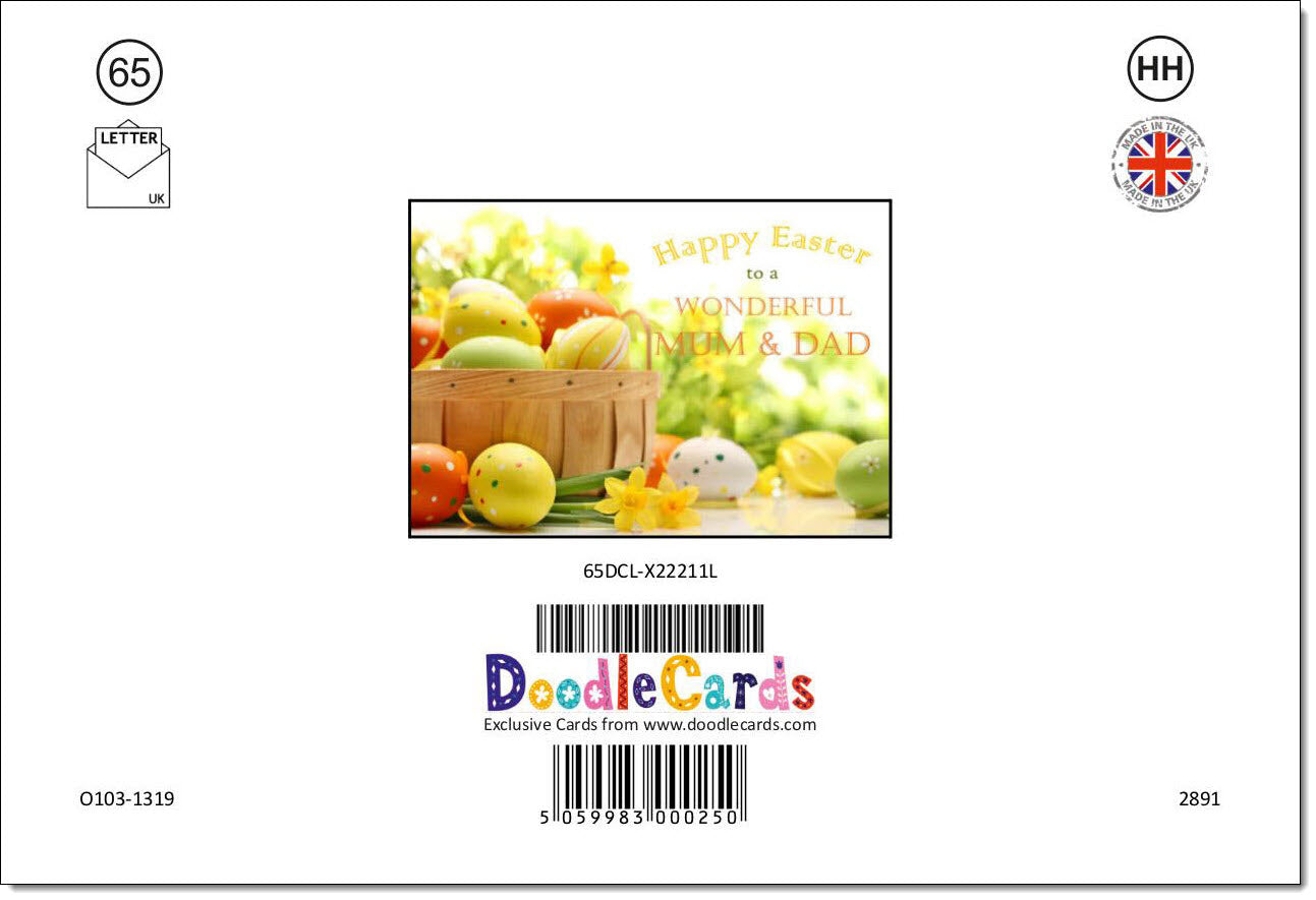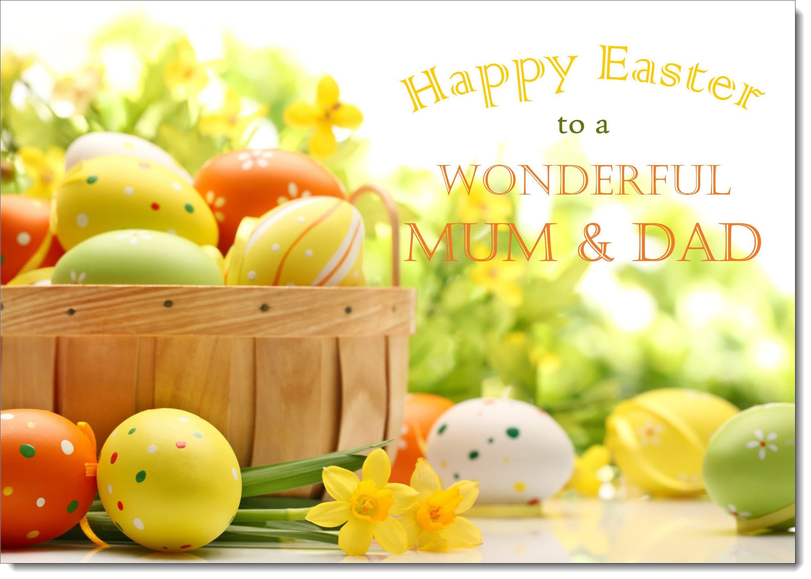 Mum & Dad Easter Card Egg Basket and Daffodils