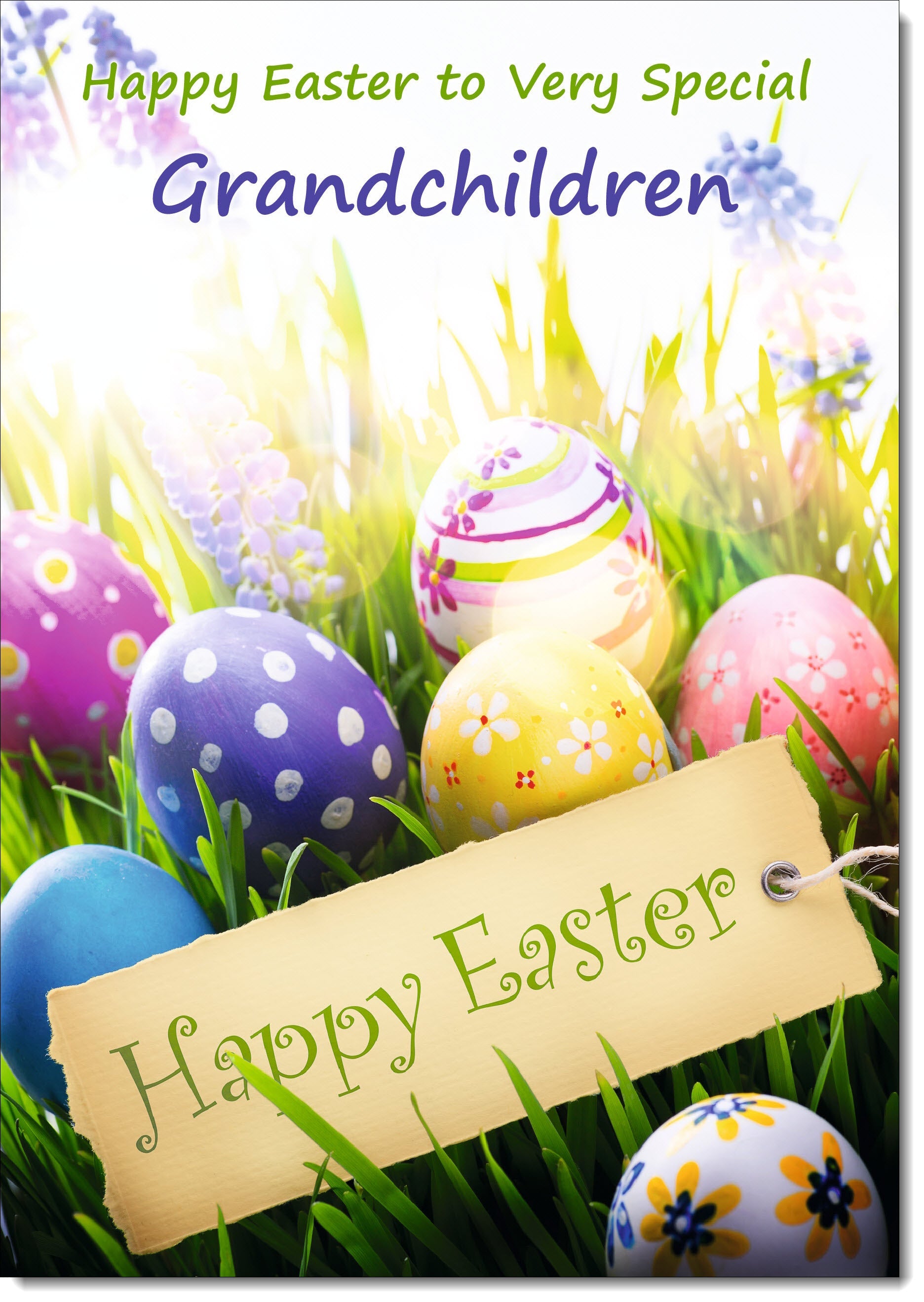 Grandchildren Easter Card Colourful Happy Easter Eggs