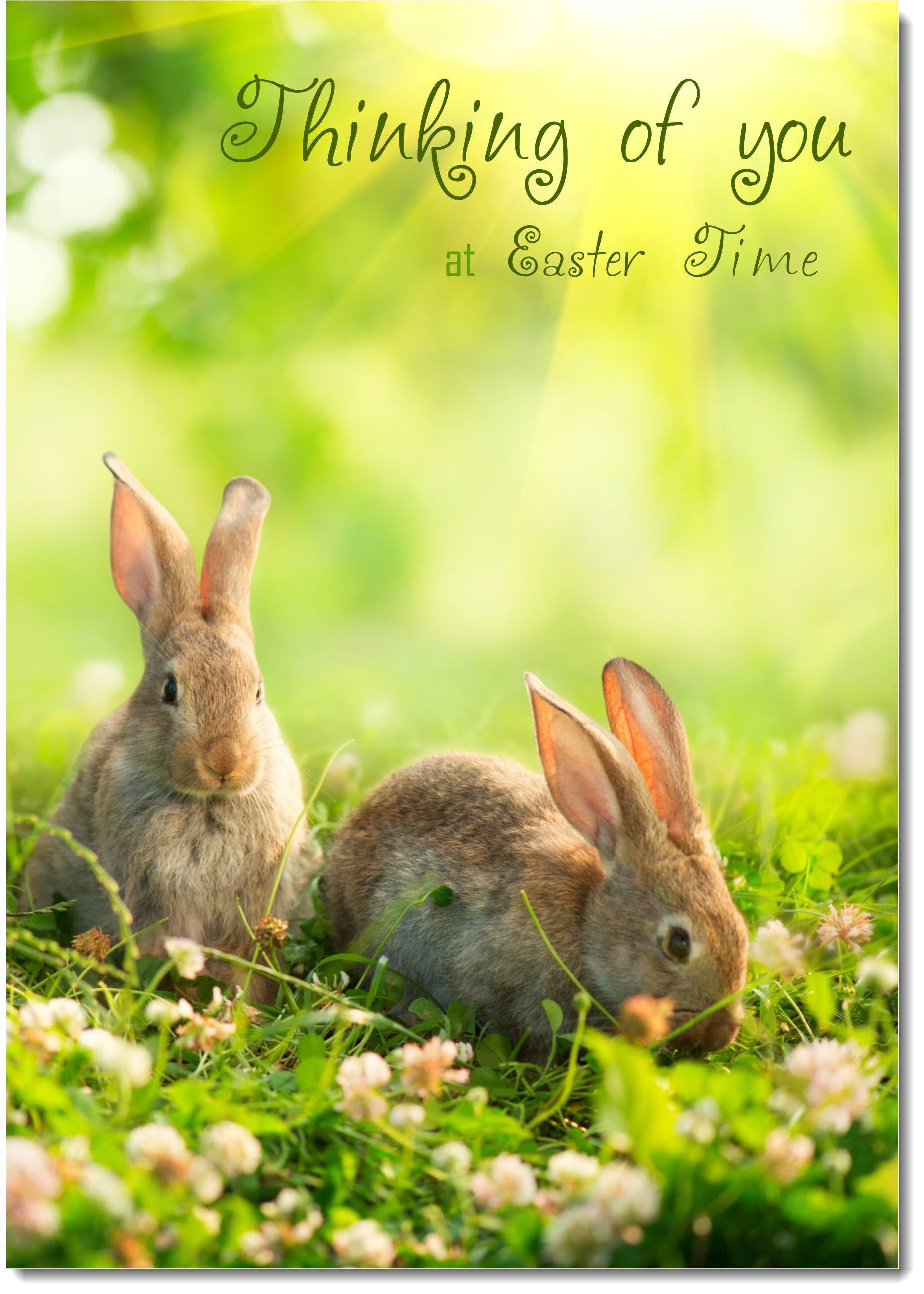 Thinking Of You Easter Card Two Bunnies on Grass