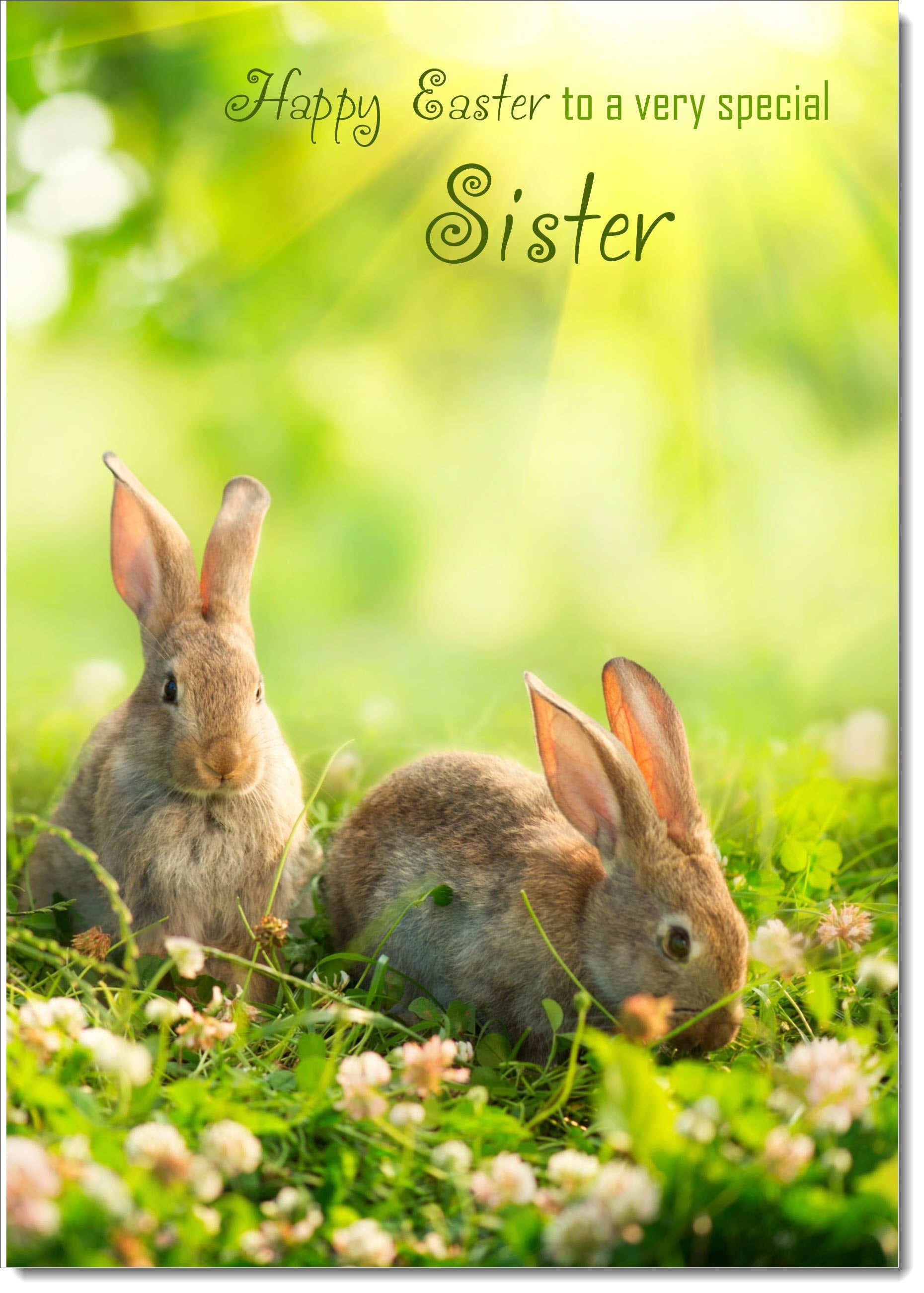 Sister Easter Card Two Bunnies on Grass
