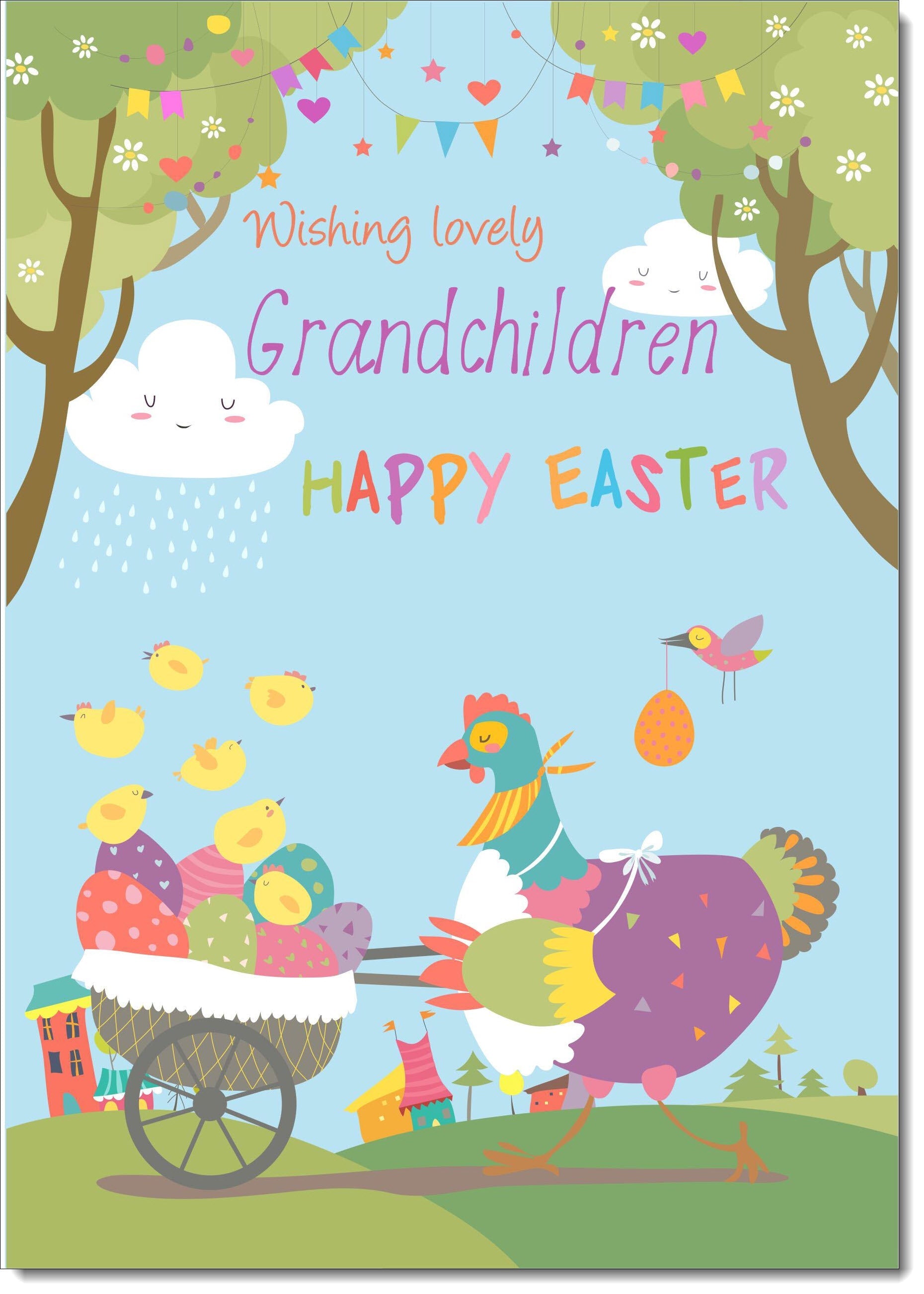 Grandchildren Easter Card Mother Hen and Easter Eggs