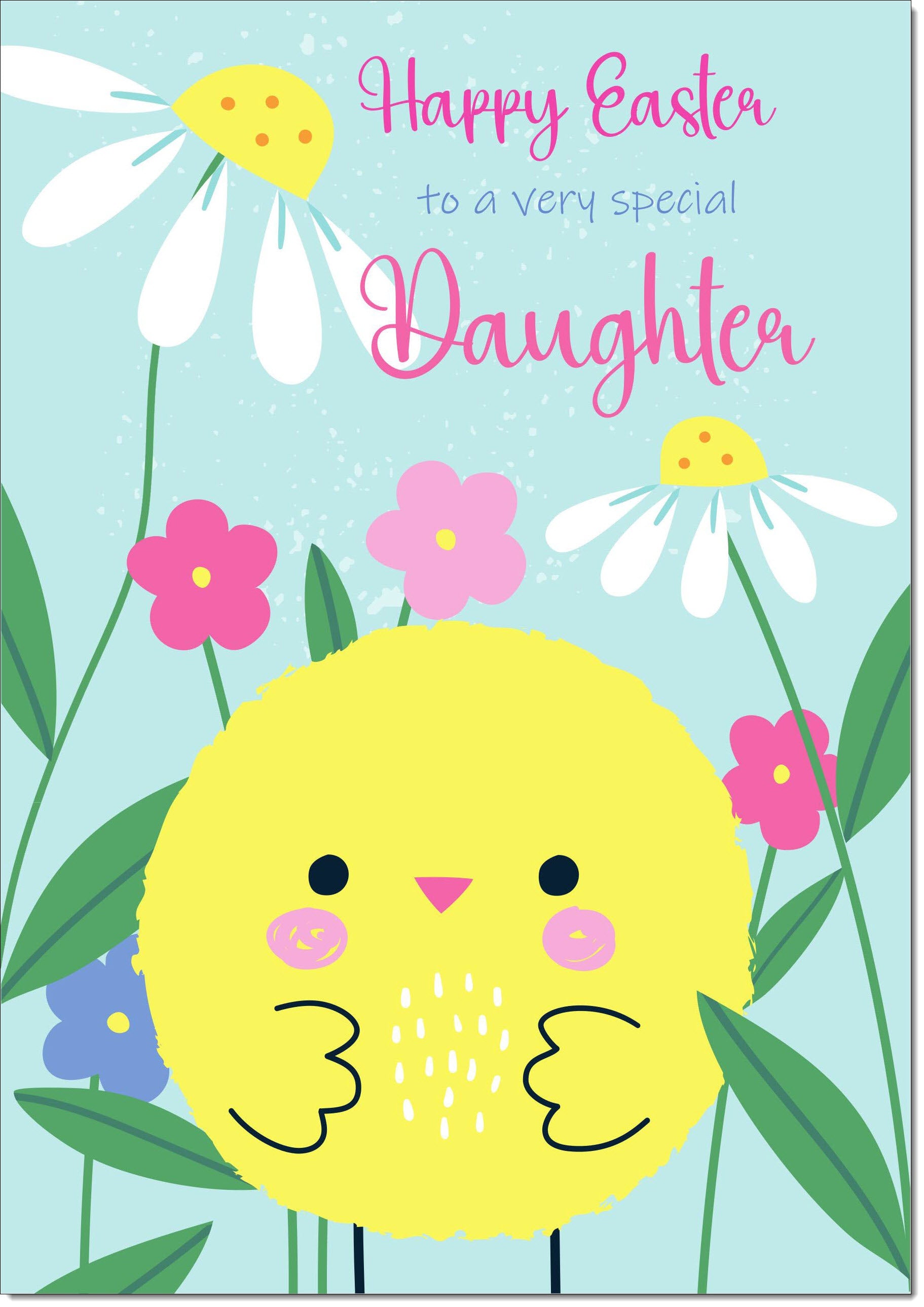 Daughter Easter Card Yellow Chick and Spring Flowers