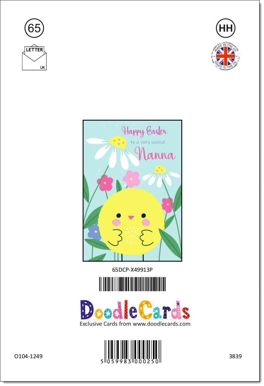 Nanna Easter Card Yellow Chick and Spring Flowers