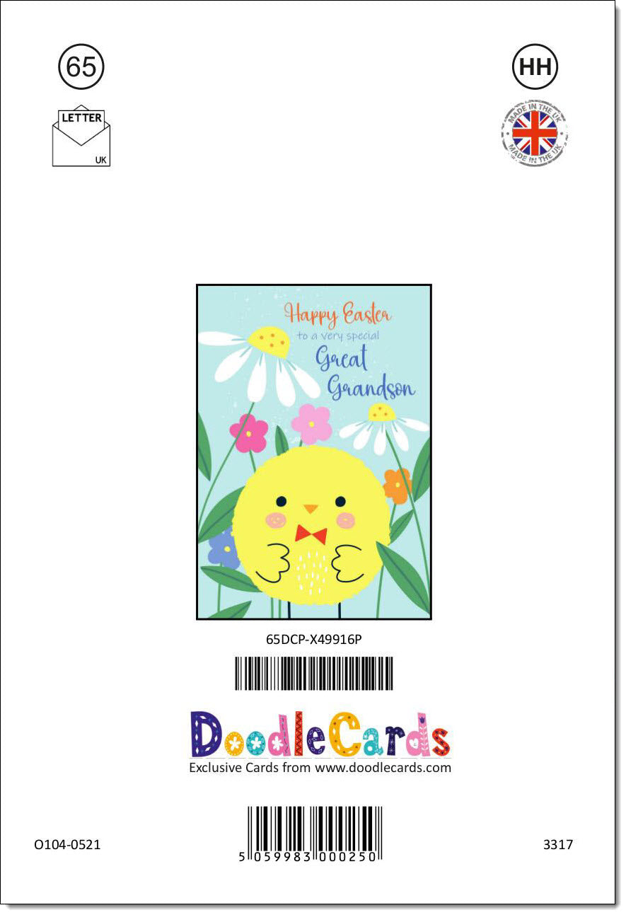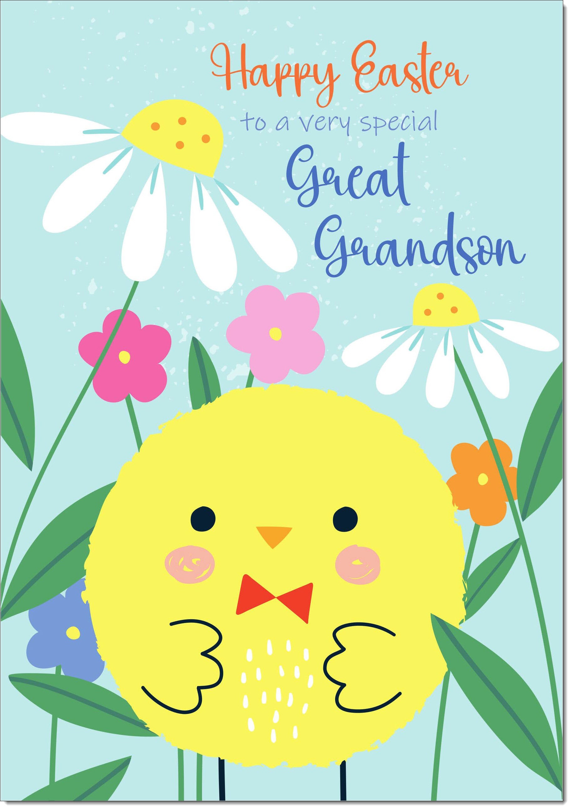 Great Grandson Easter Card Yellow Chick and Spring Flowers