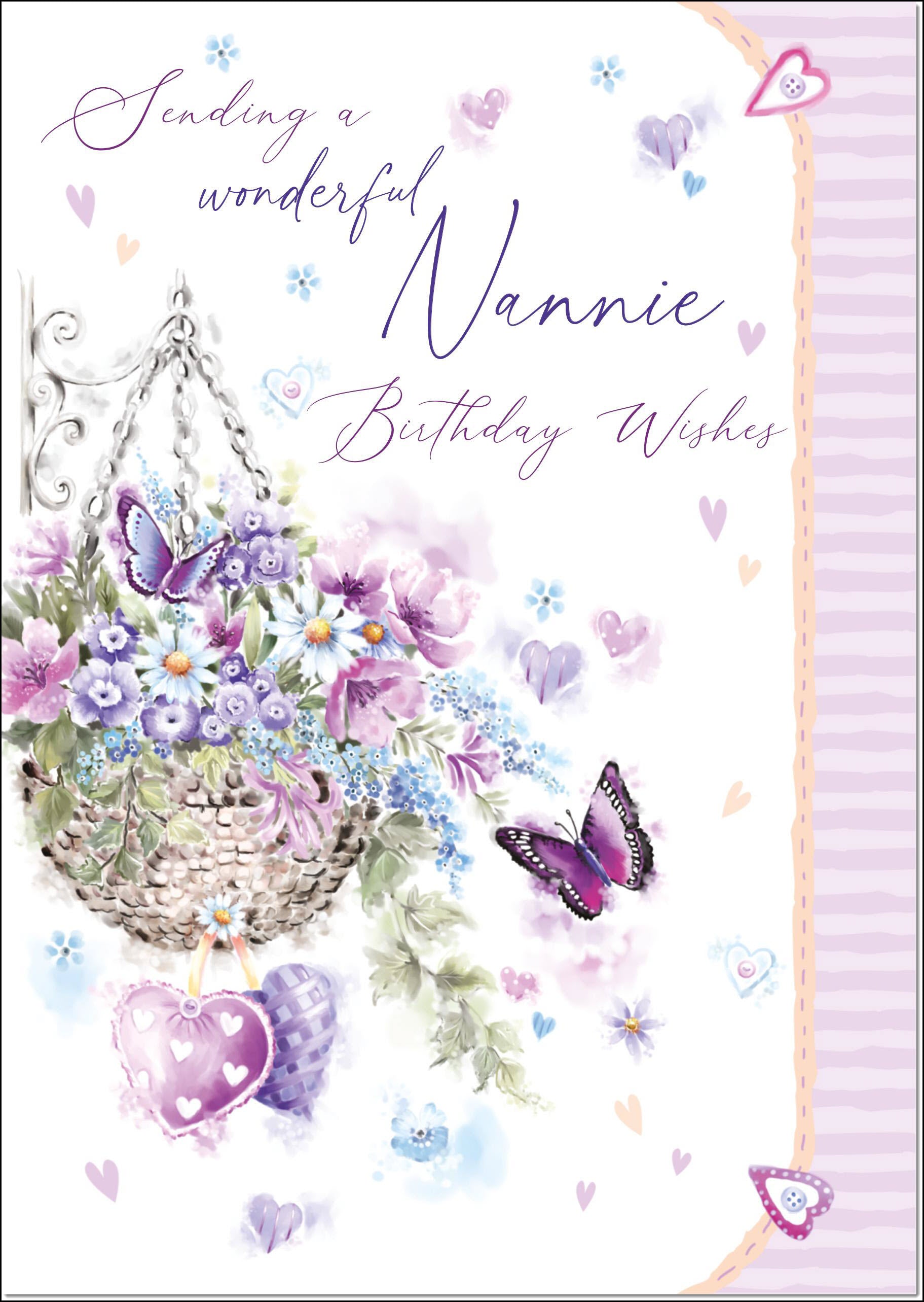 Nannie Birthday Card Purple Hanging Basket