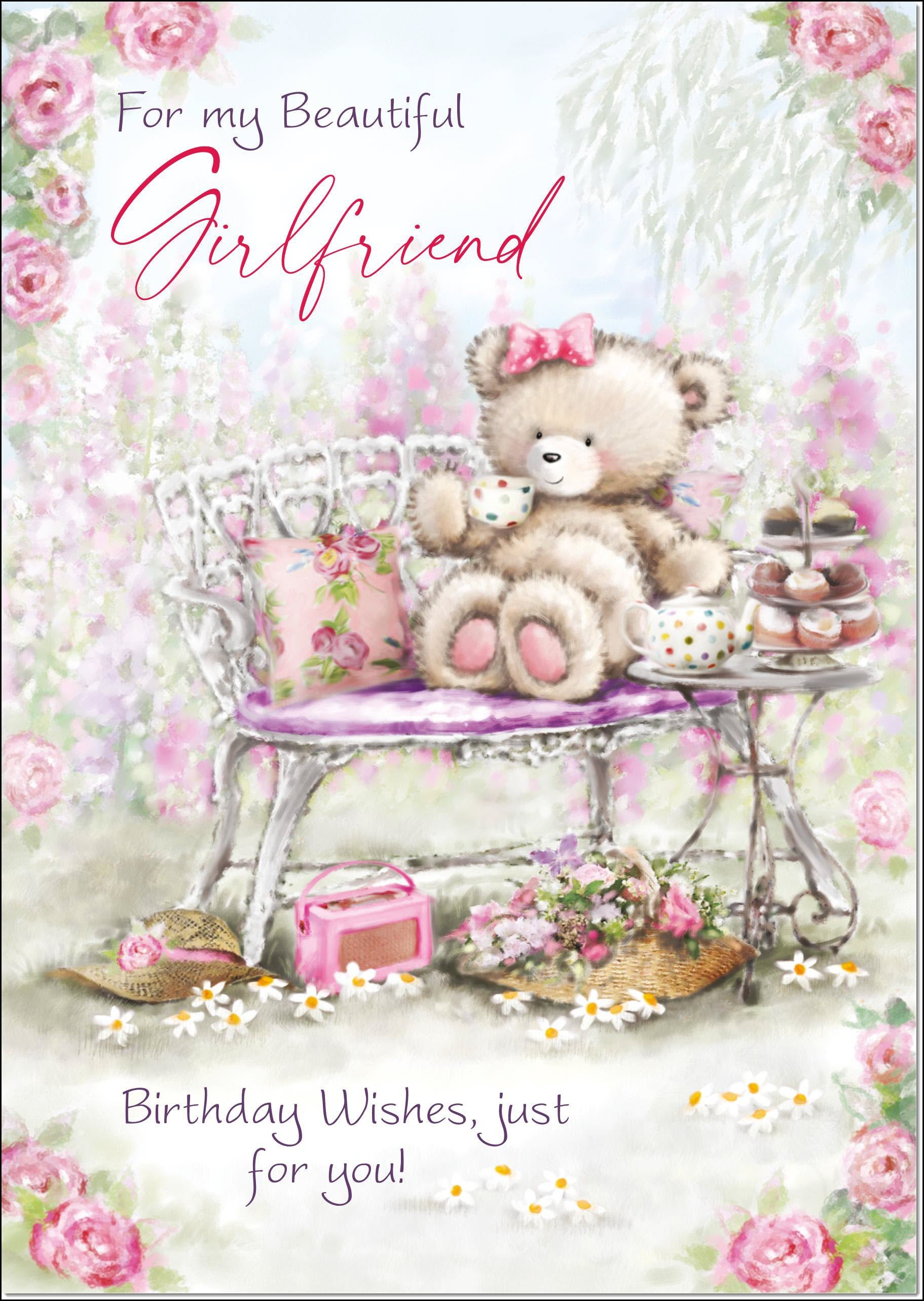 Girlfriend Birthday Card Cute Teddy's Afternoon Tea