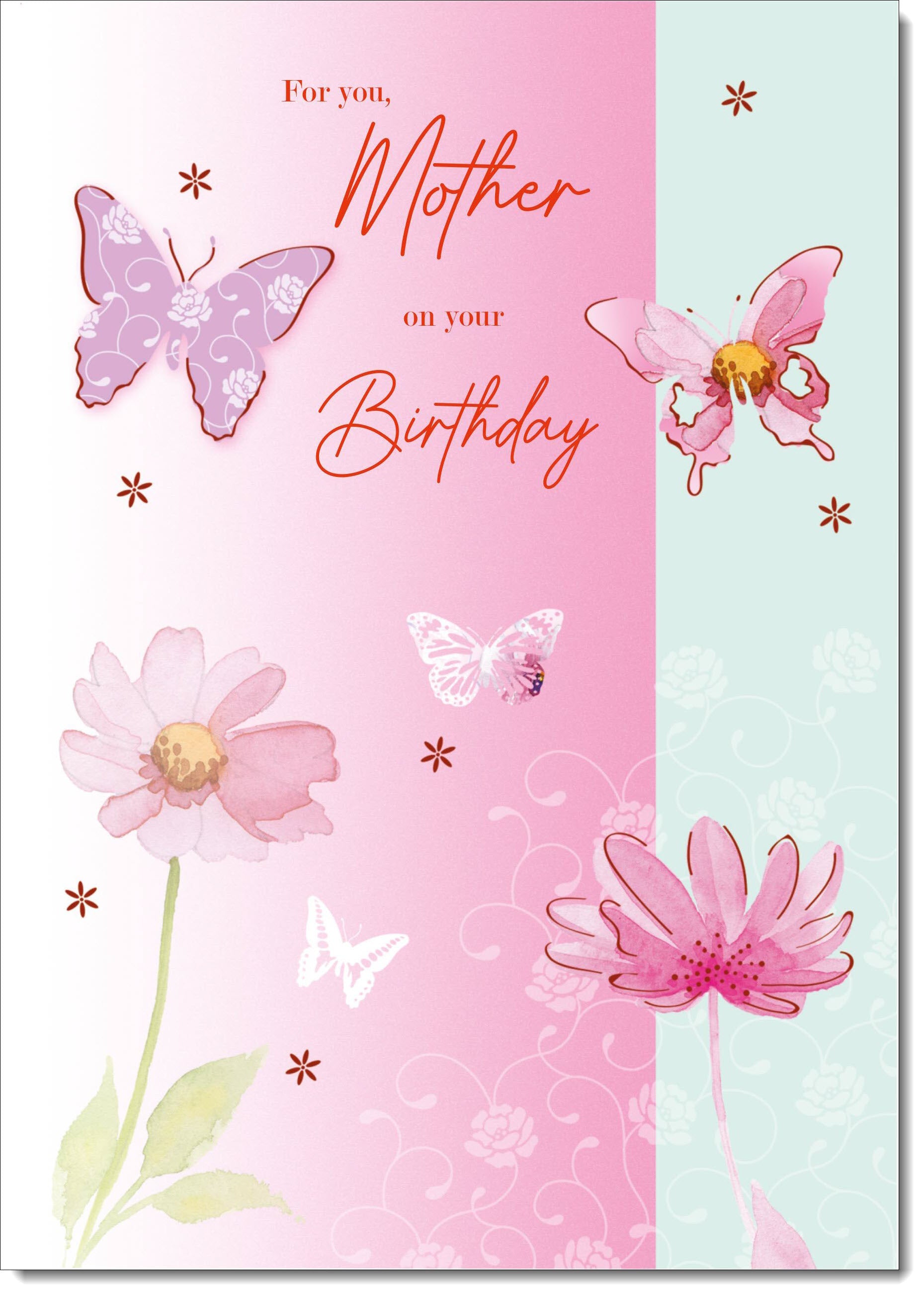 Mother Birthday Card Butterflies and Flowers