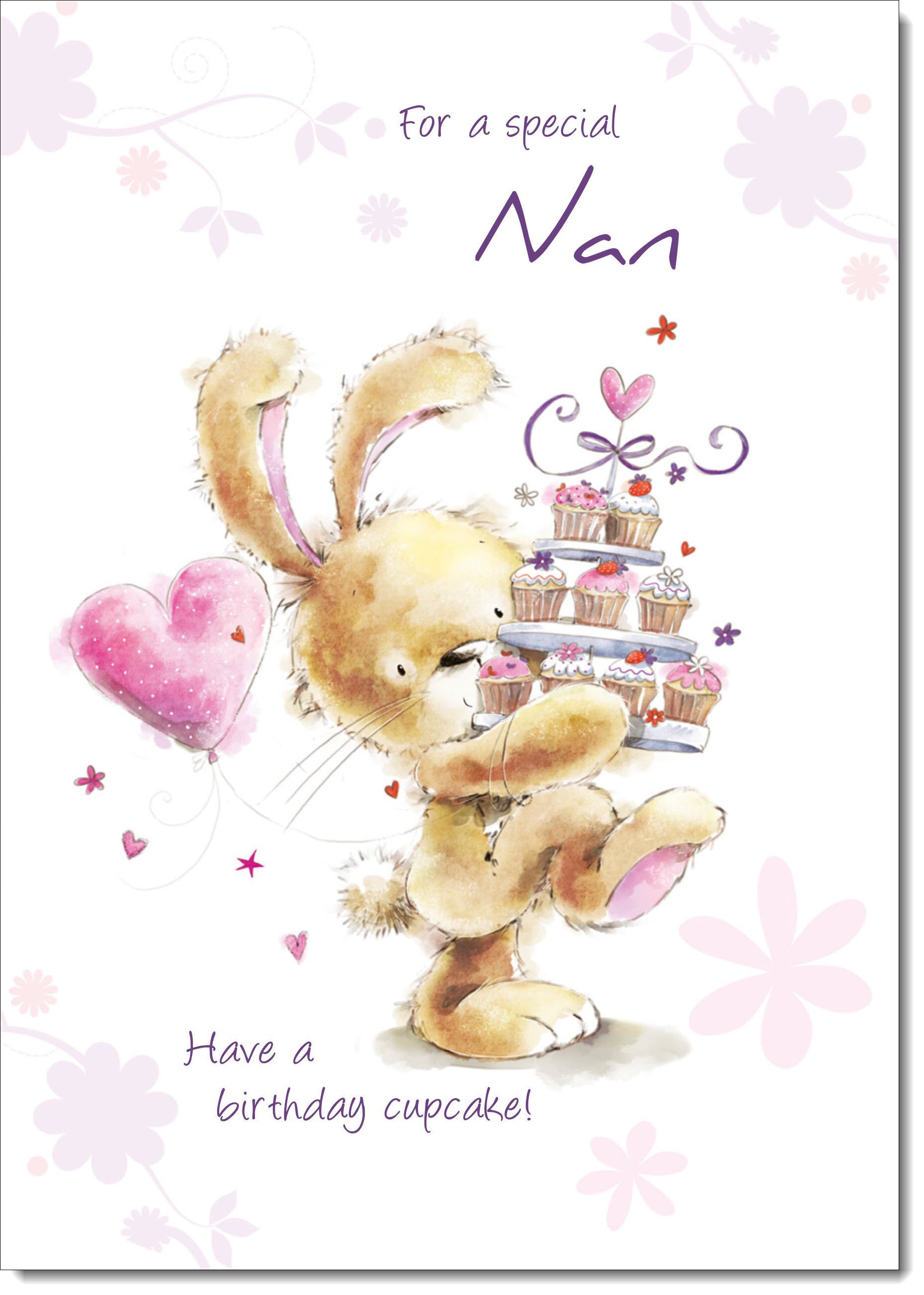 Nan Birthday Card Cute Rabbit with Cake