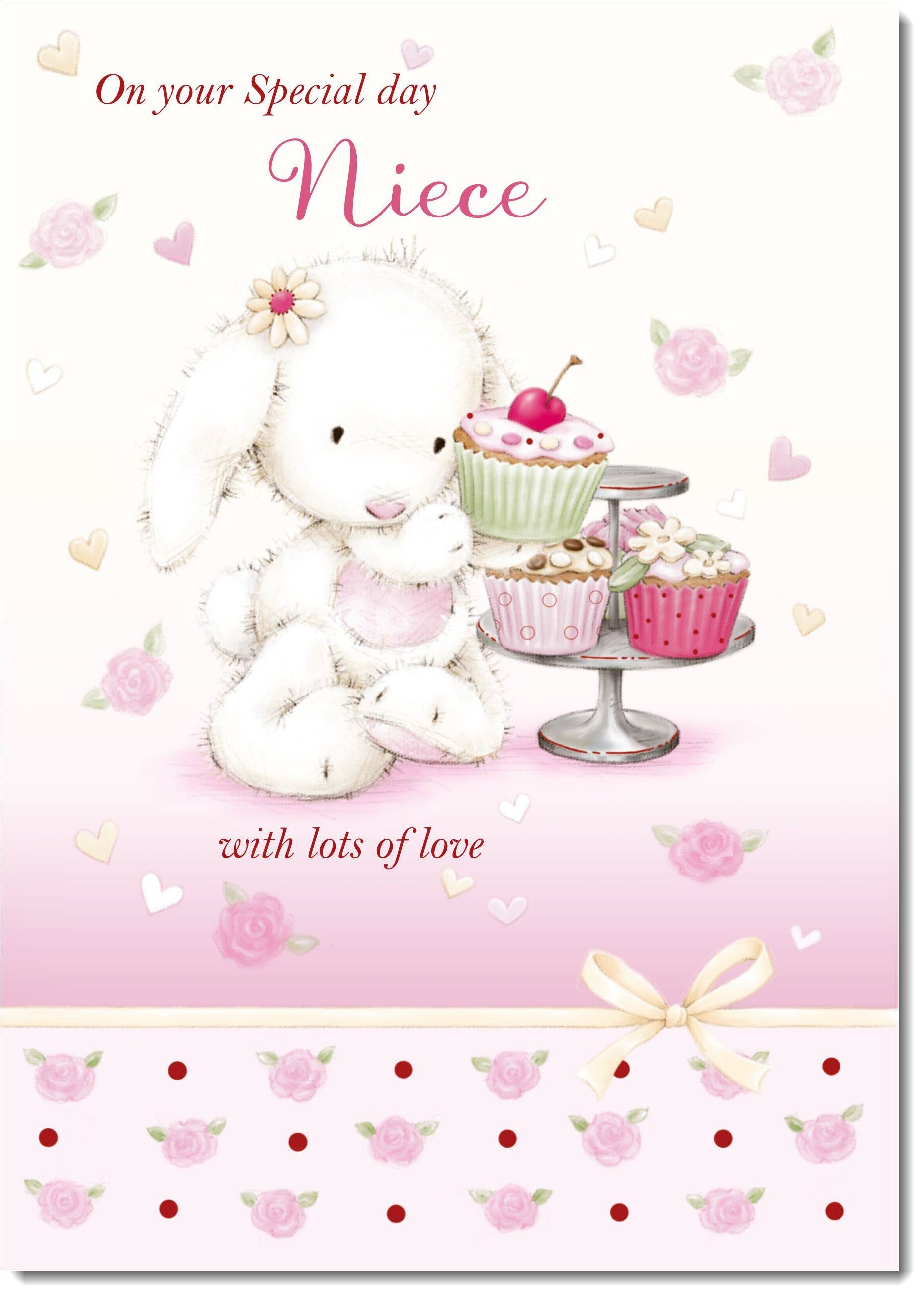Niece Birthday Card Cute Rabbit with Cake