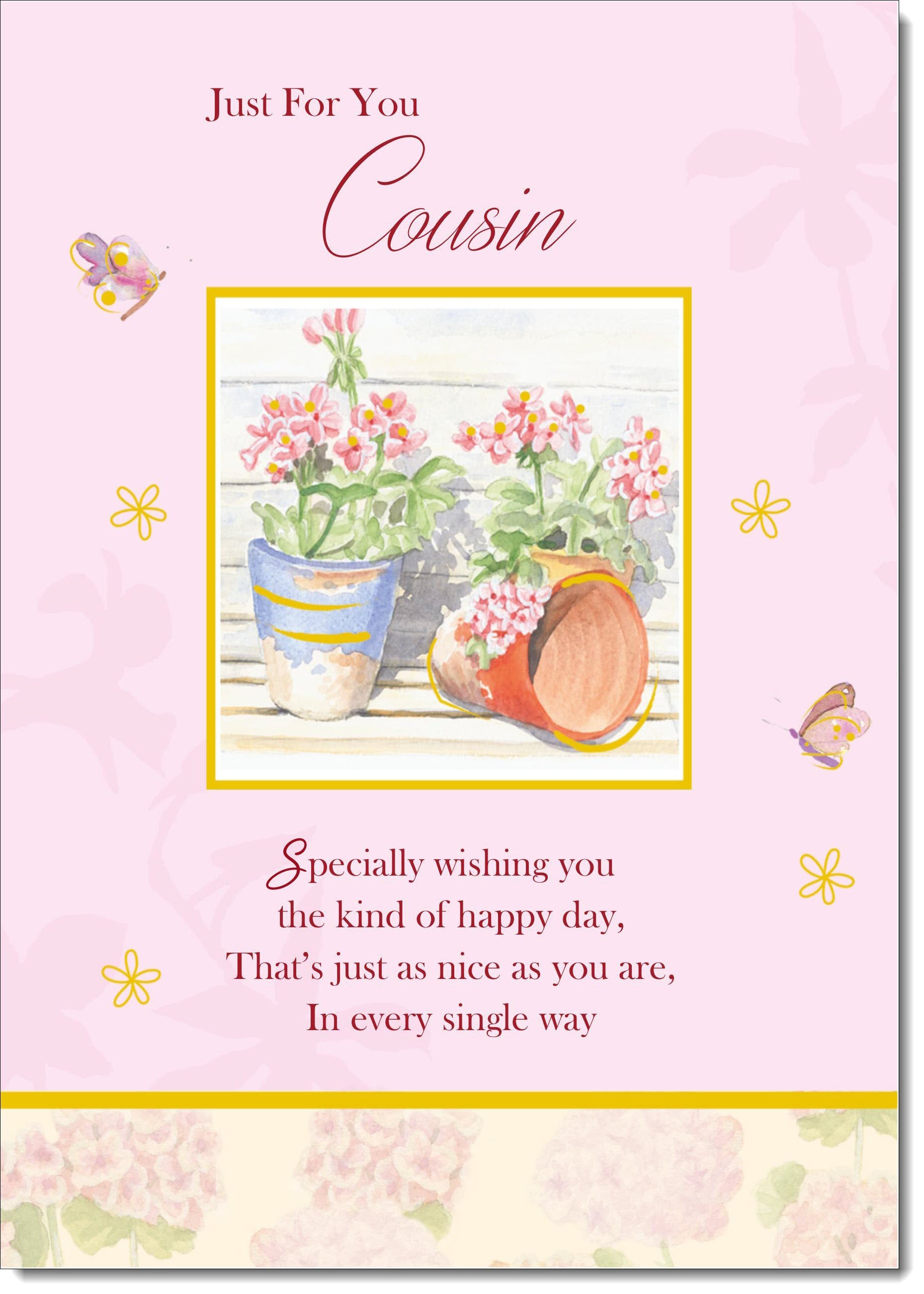 Cousin Birthday Card for Her Garden Pots