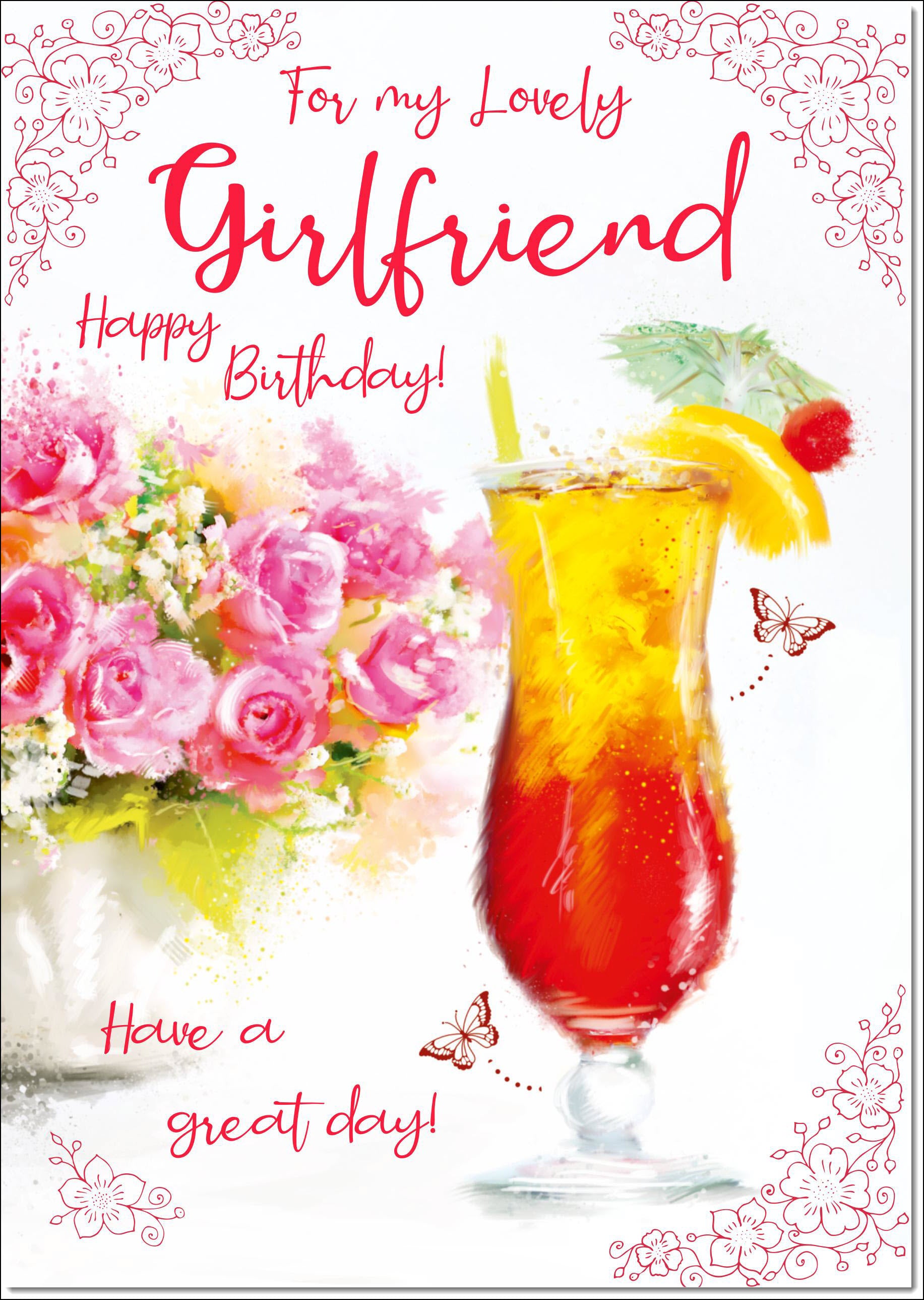 Girlfriend Birthday Card Floral Cocktail