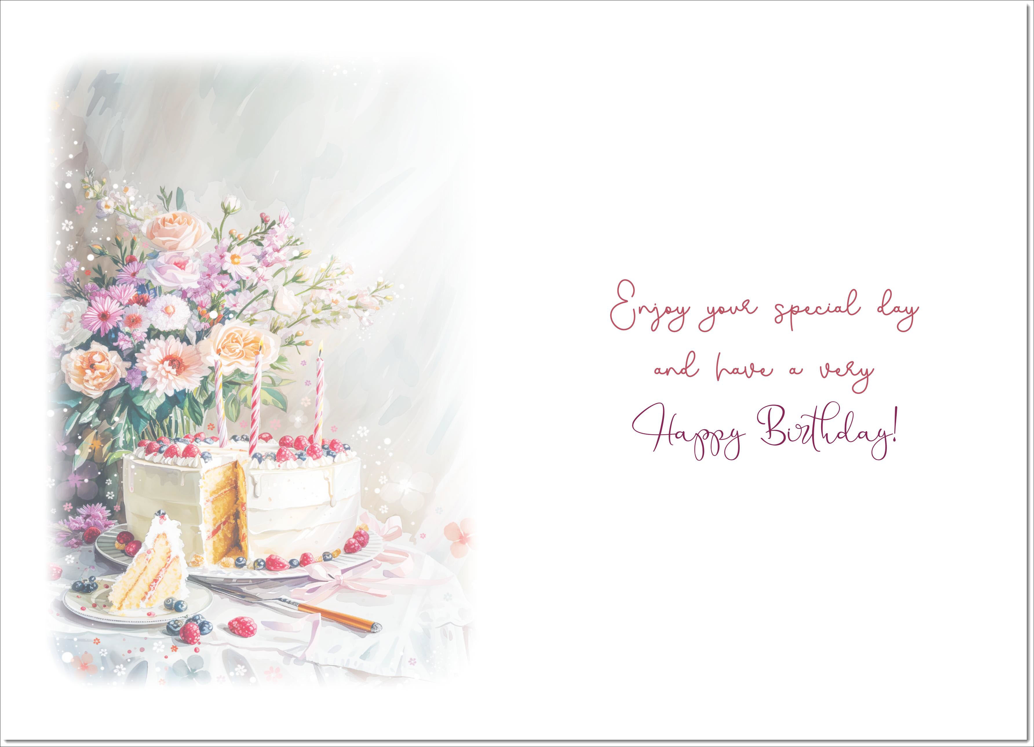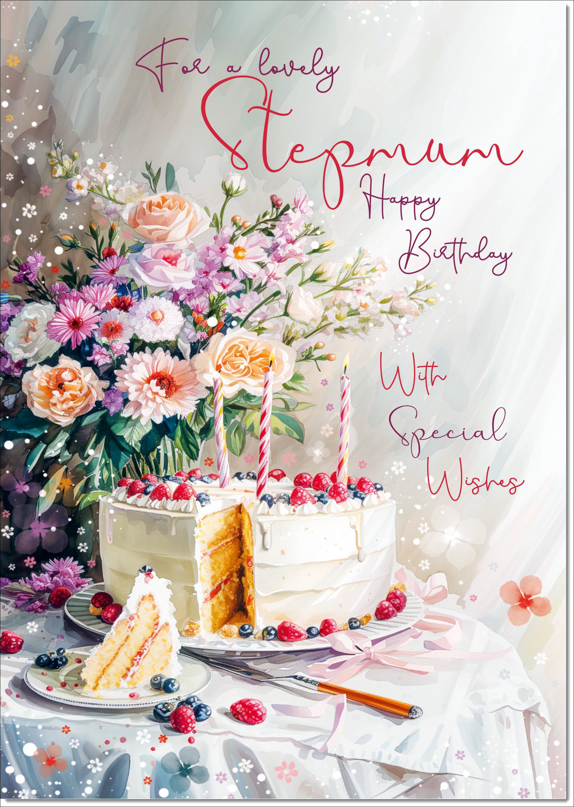 Stepmum Birthday Card Birthday Cake and Flowers