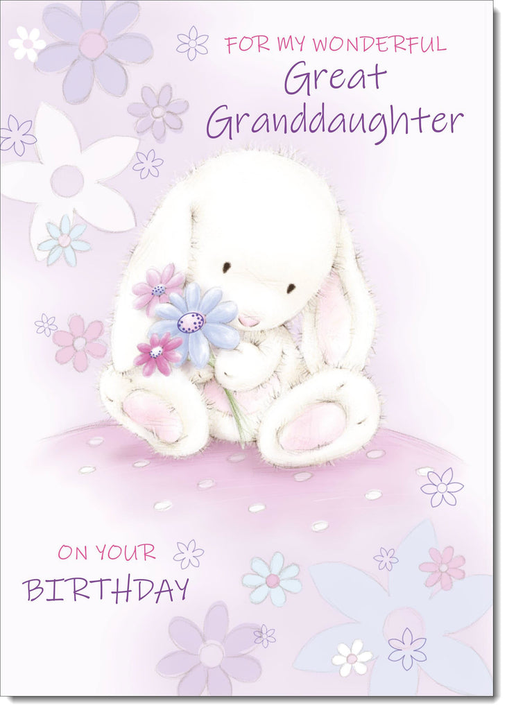 Great Granddaughter Birthday Card Cute Rabbit with Flowers