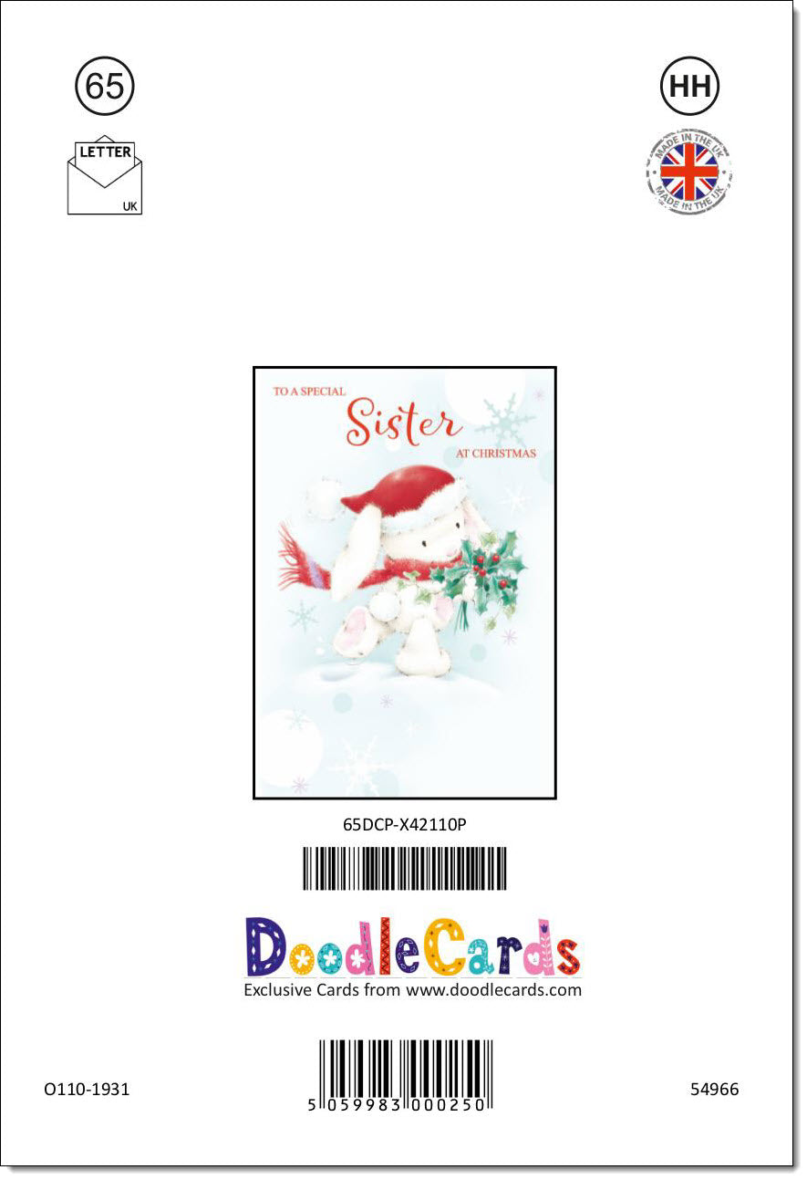 Sister Christmas Card Cute Rabbit with Holly