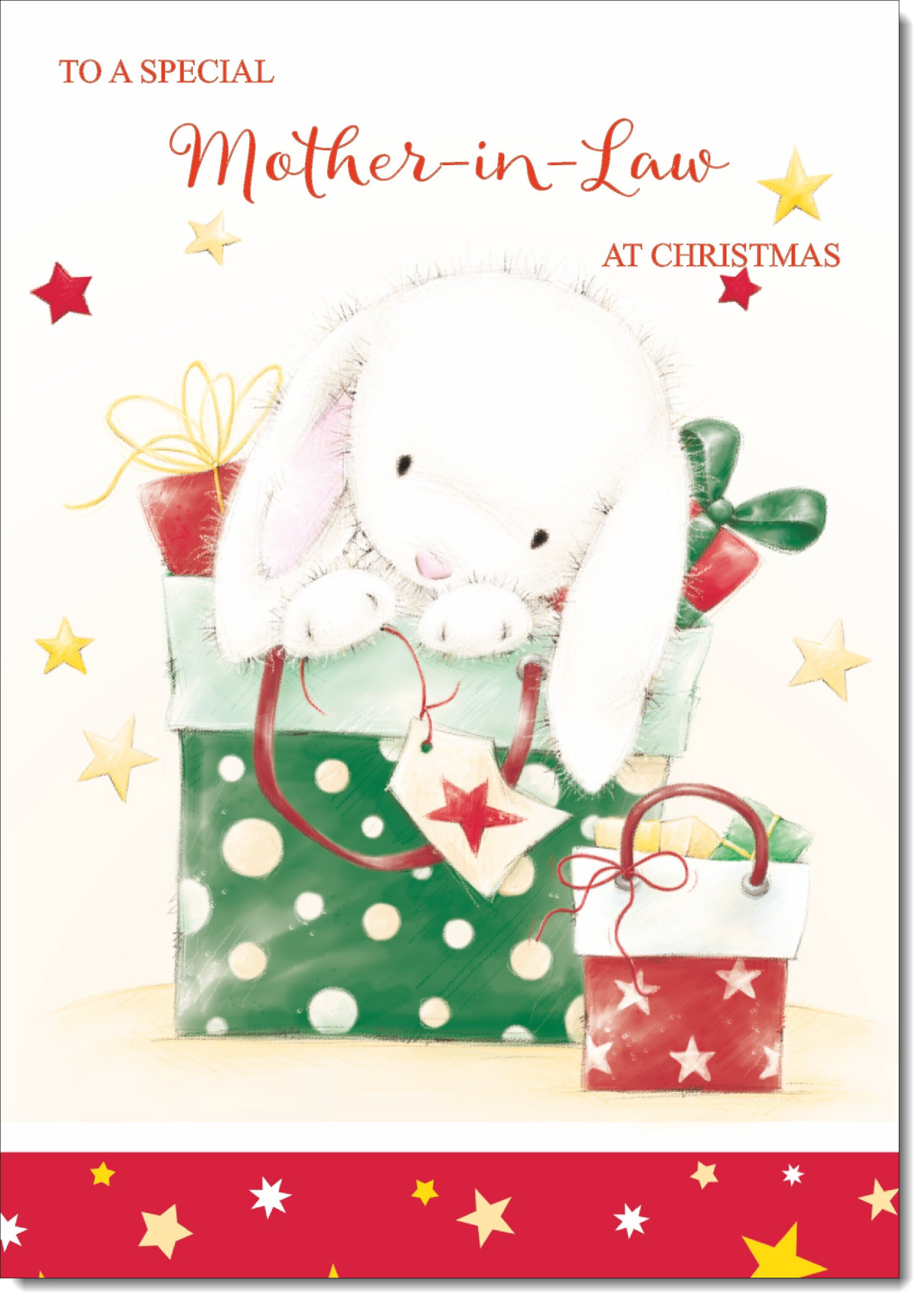 Mother-in-Law Christmas Card Cute Rabbit with Parcels