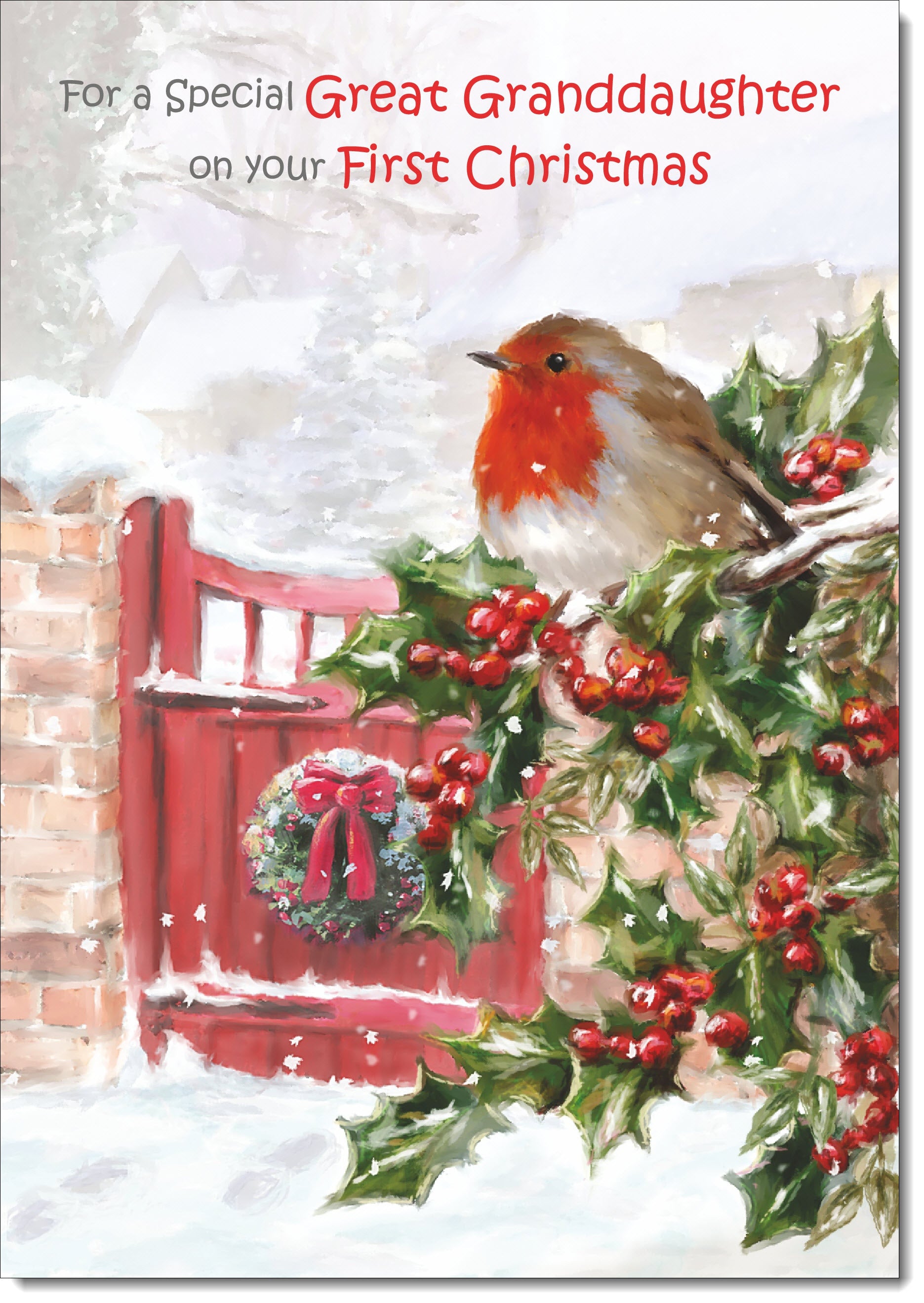 Great Granddaughters 1st Christmas Card Robin on Holly Tree