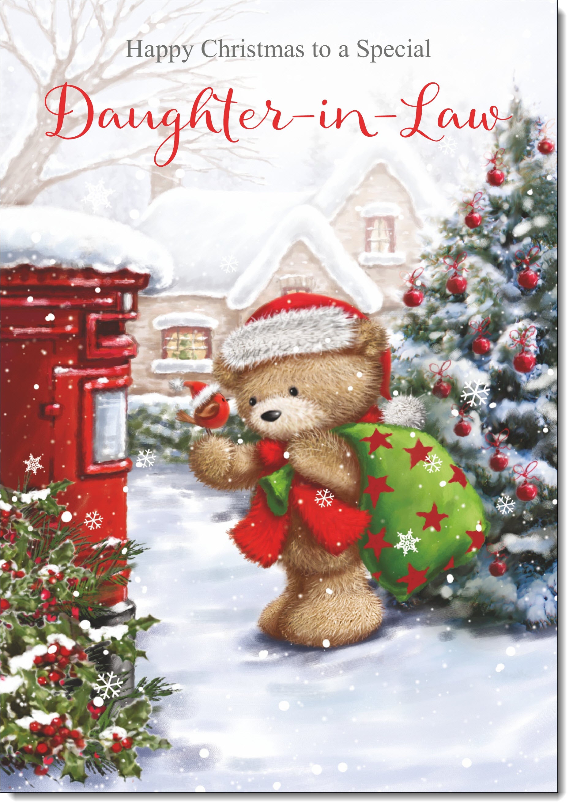 Daughter-in-Law Christmas Card Cute Bear at Post Box