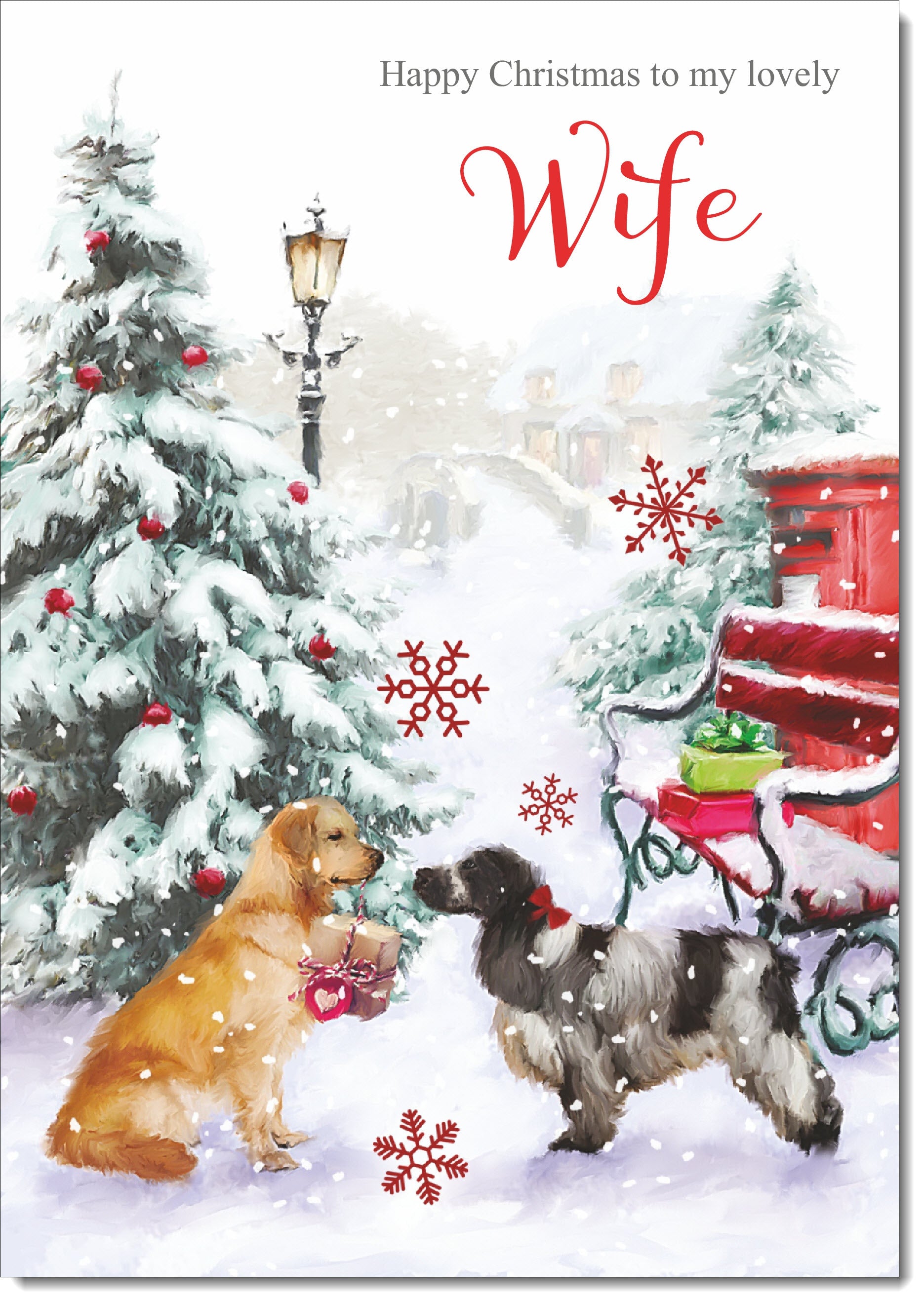 Wife Christmas Card Two Dogs in Snow