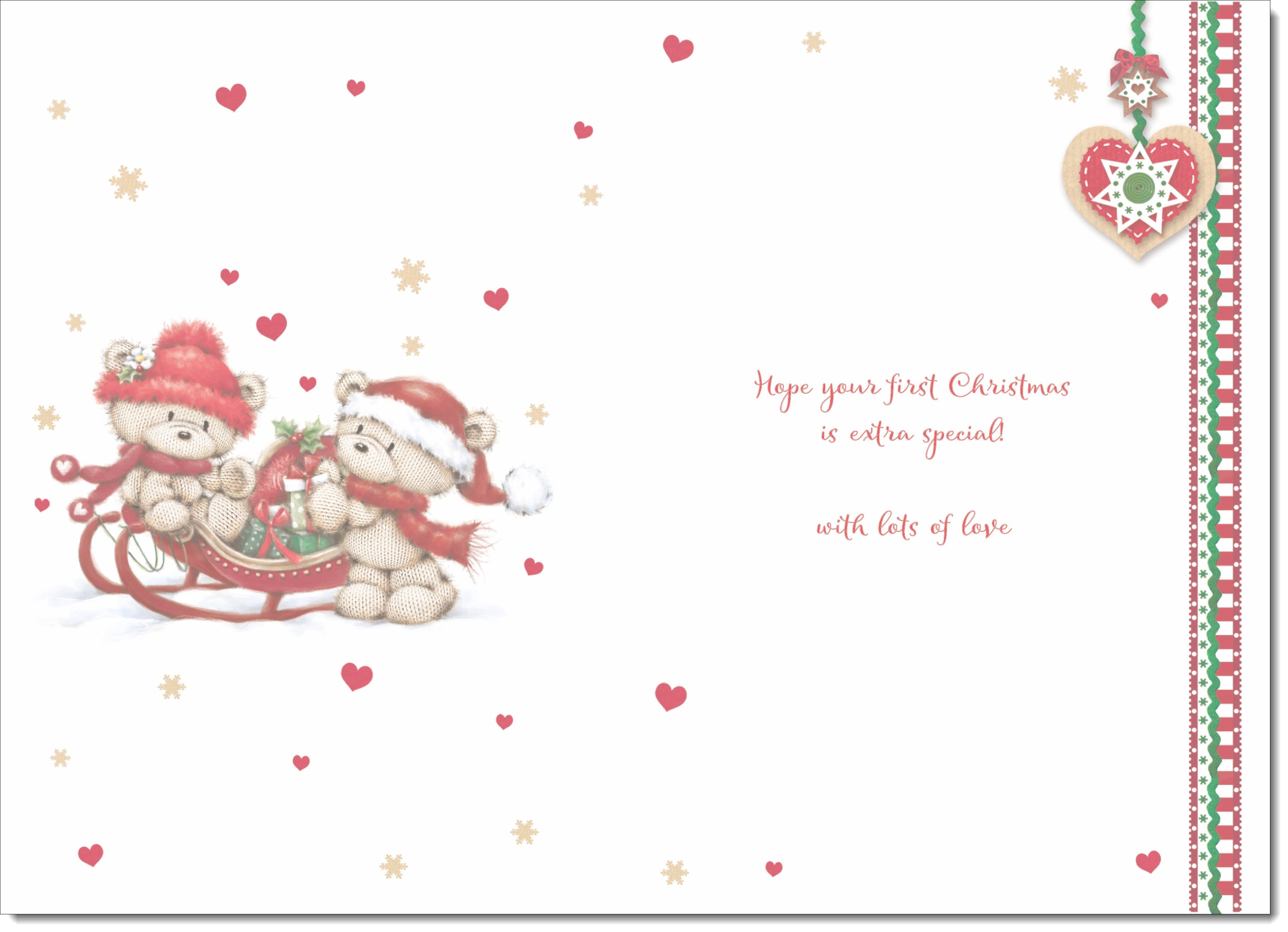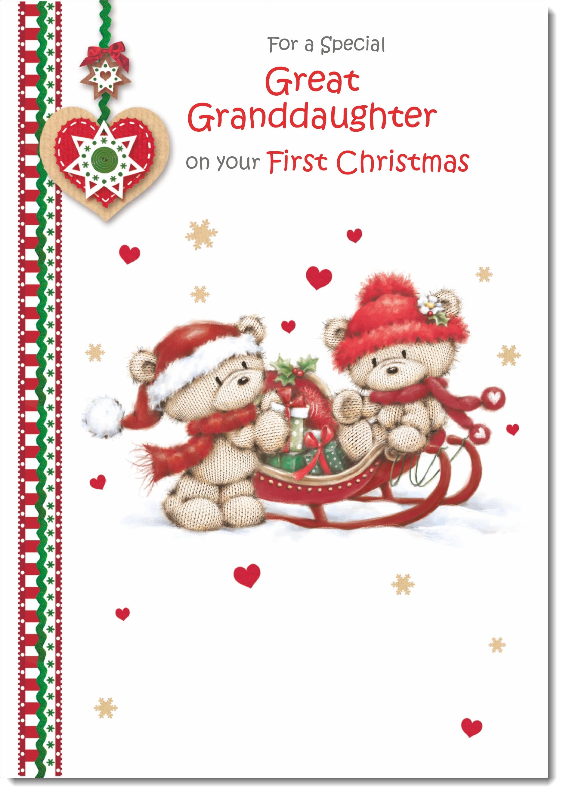Great Granddaughters 1st Christmas Card Two Cute Bears on Sled
