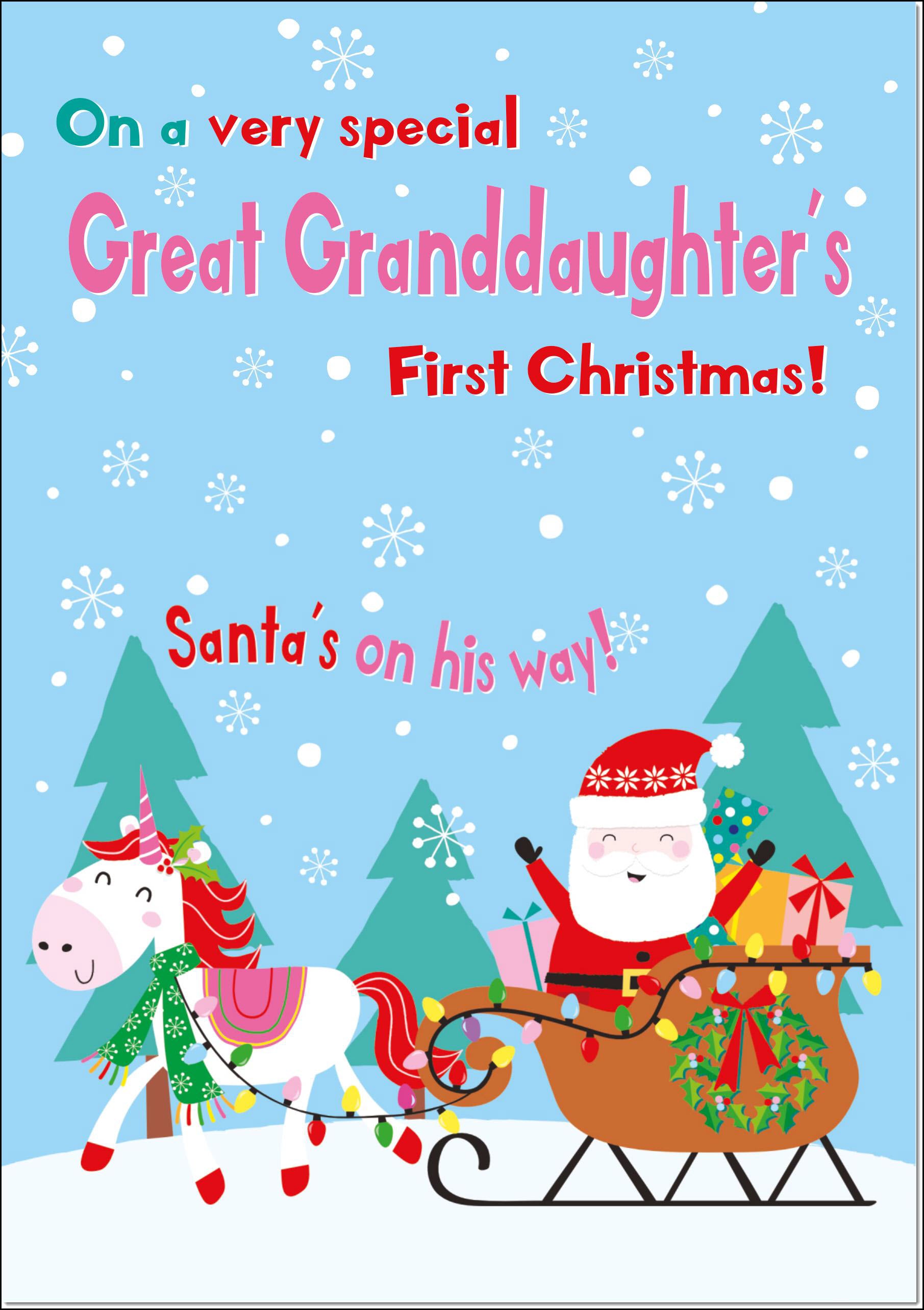 Great Granddaughters 1st Christmas Card Magic Santa's Sleigh With Unicorn