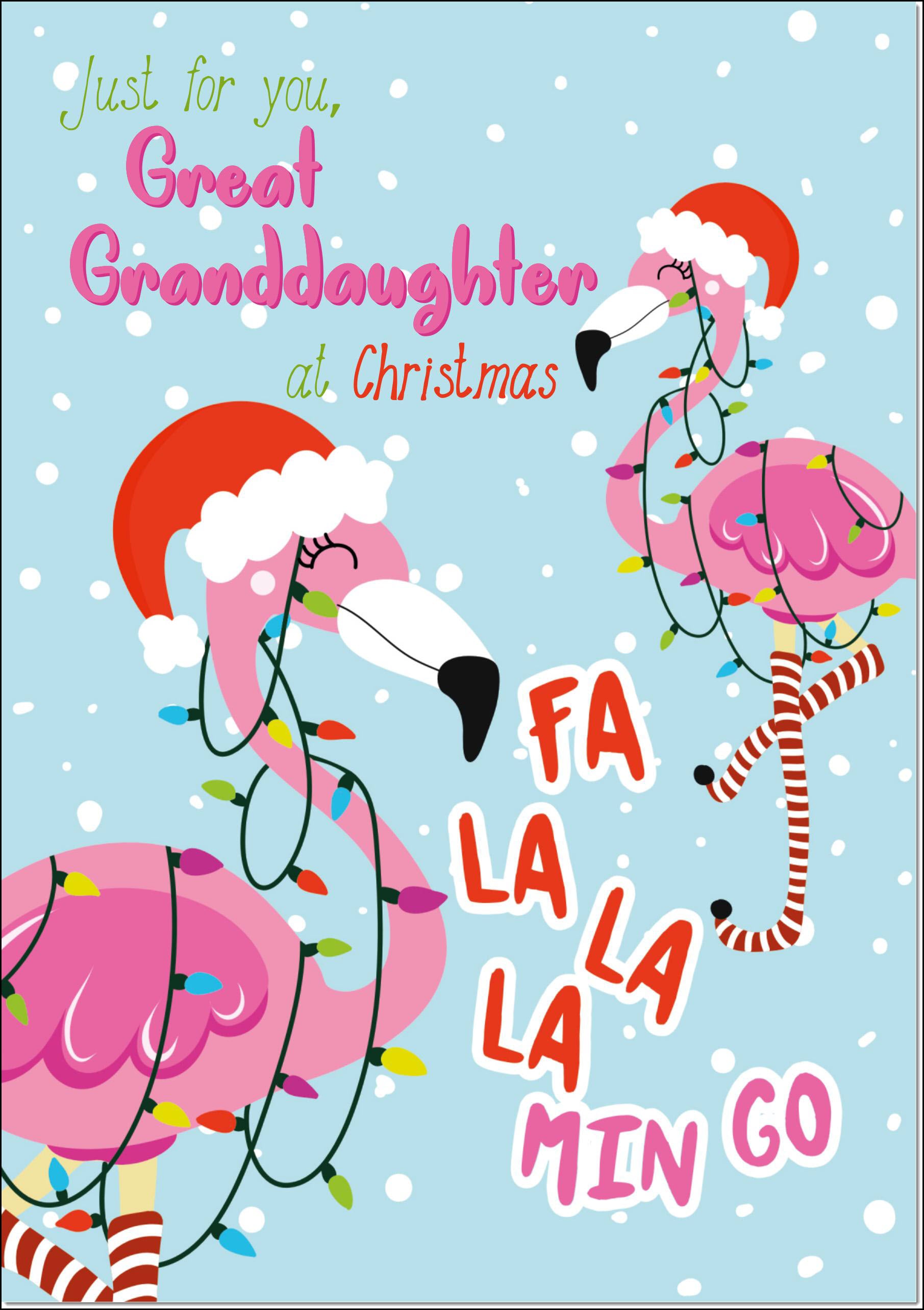 Great Granddaughter Christmas Card Flamingo Christmas Tree Lights