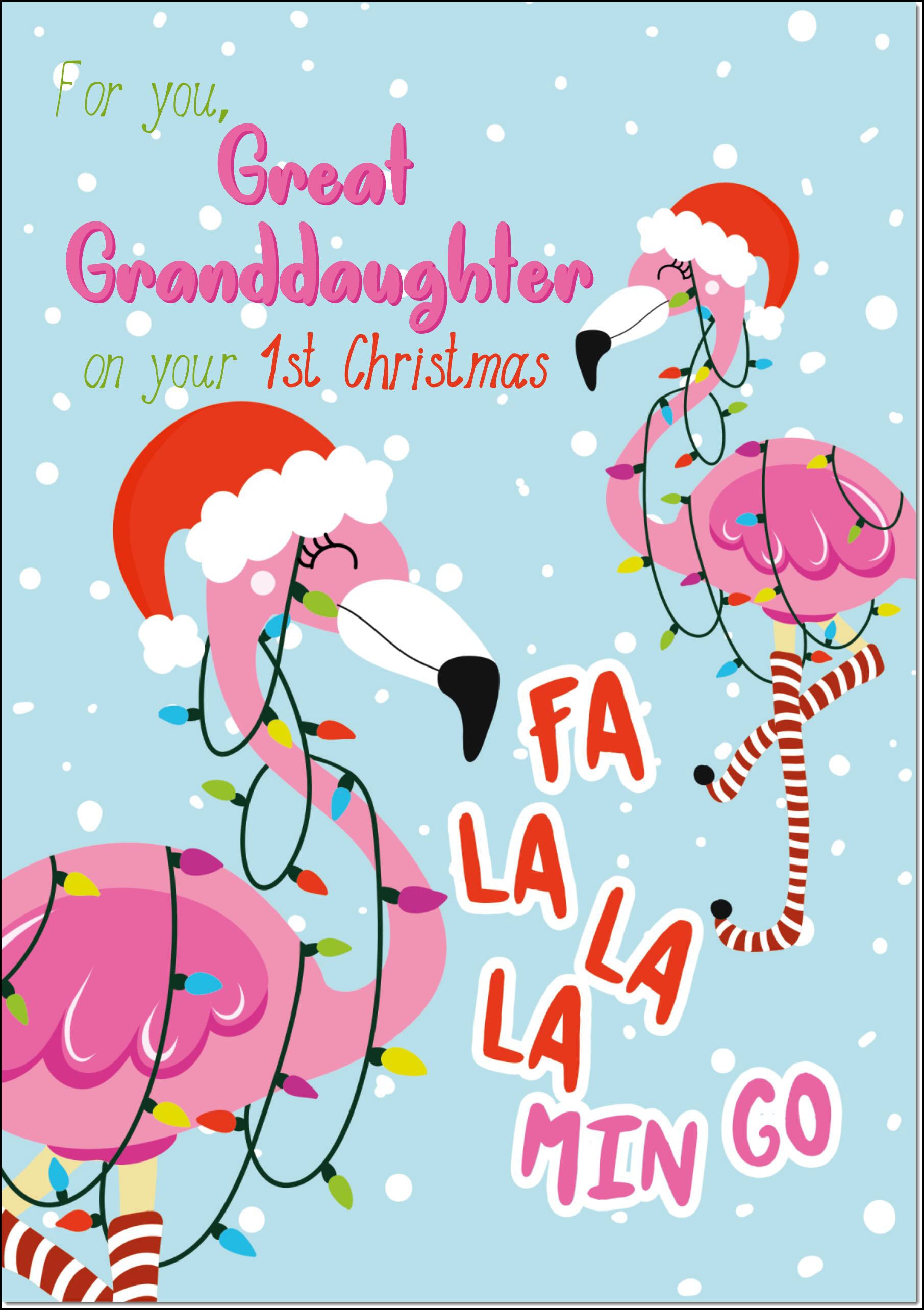 Great Granddaughters 1st Christmas Card Flamingo Christmas Tree Lights