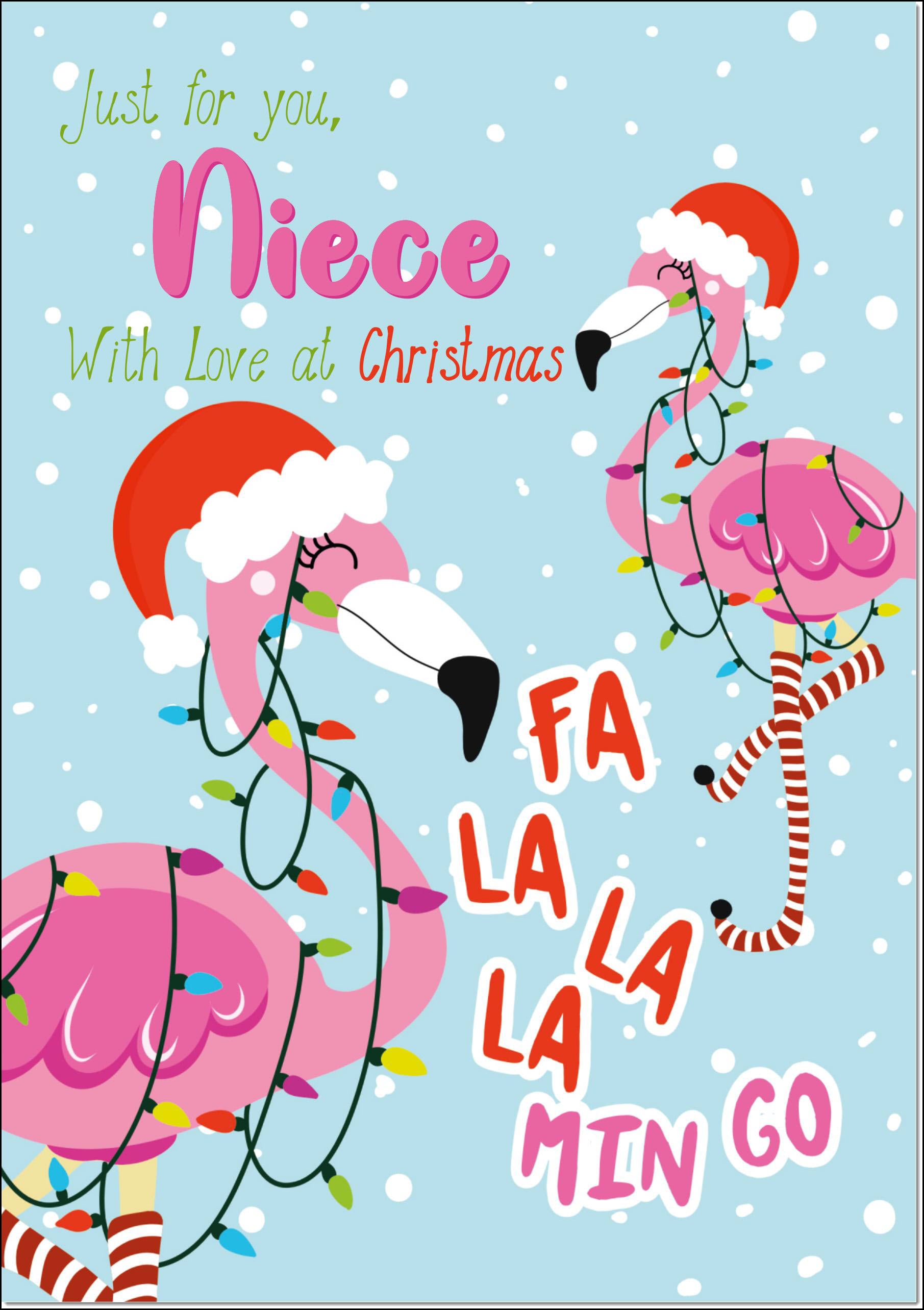 Niece Christmas Card Flamingo Christmas Tree Lights