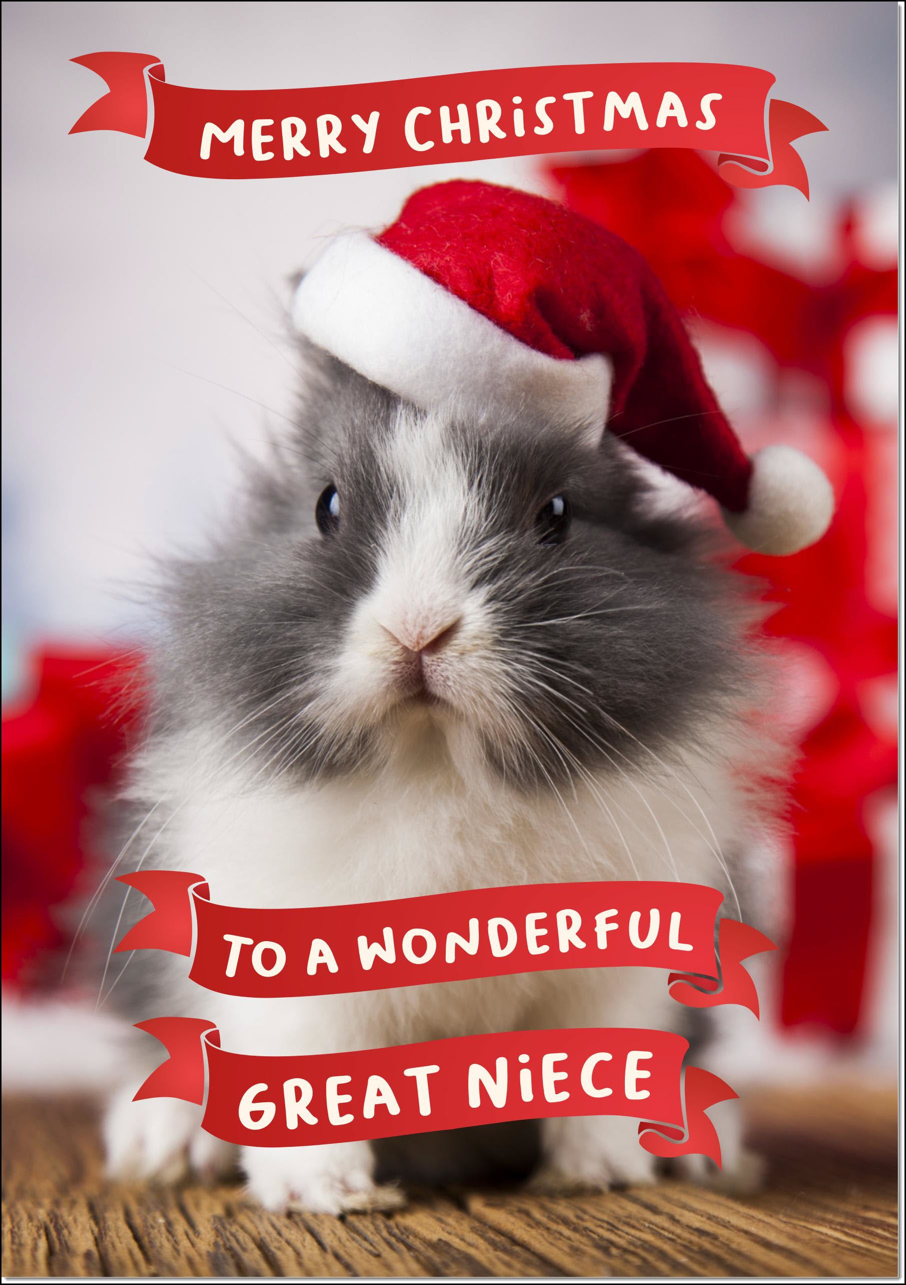 Great Niece Christmas Card Cute Santa Paws Rabbit Pet Christmas Hat