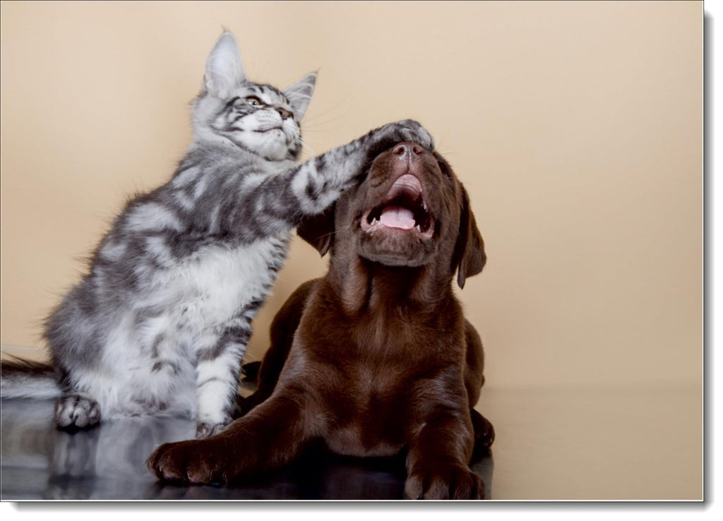 Dog Birthday Card Maine Coon Cat and Labrador Puppy