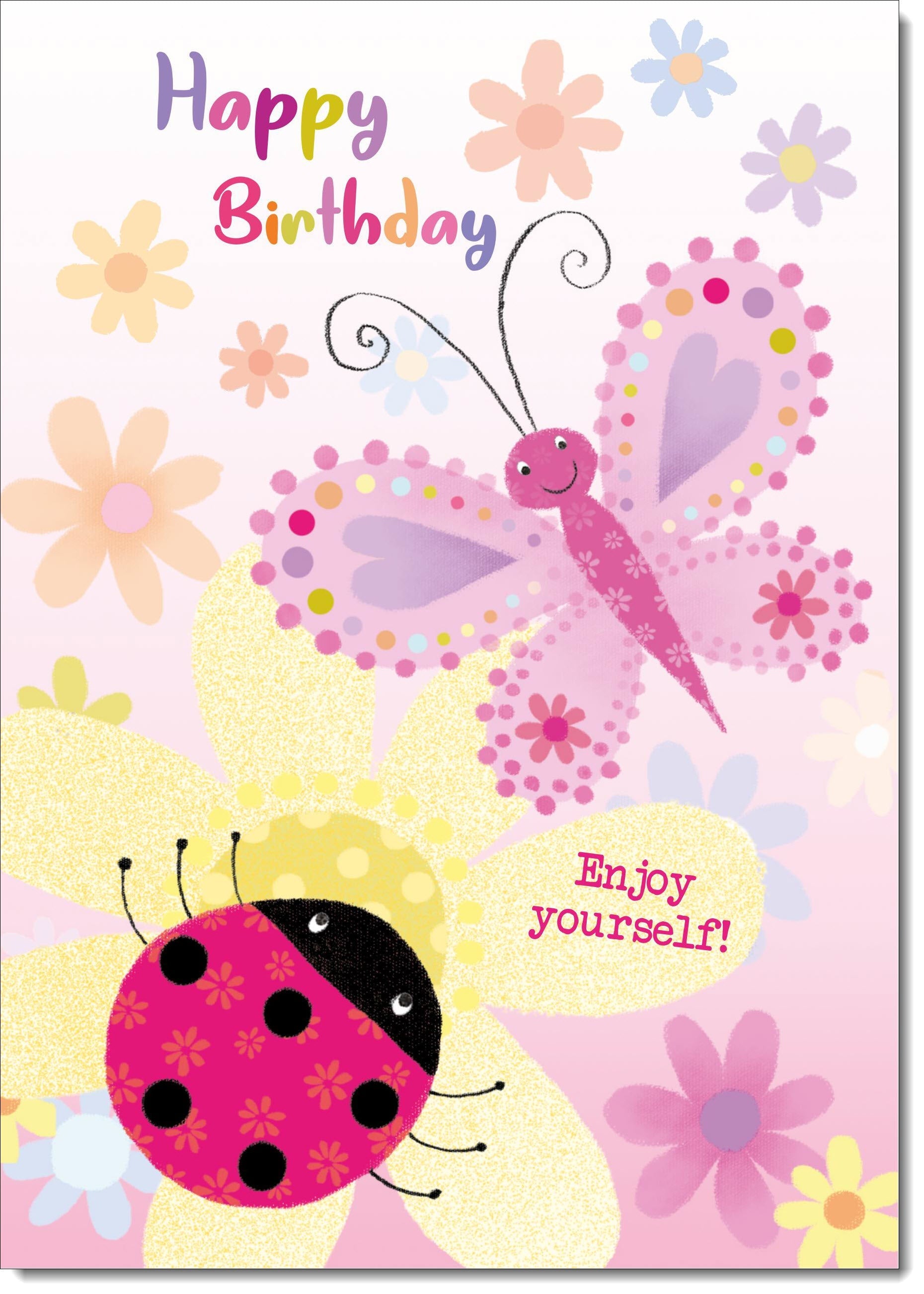Birthday Card for Girl Ladybird and Butterfly