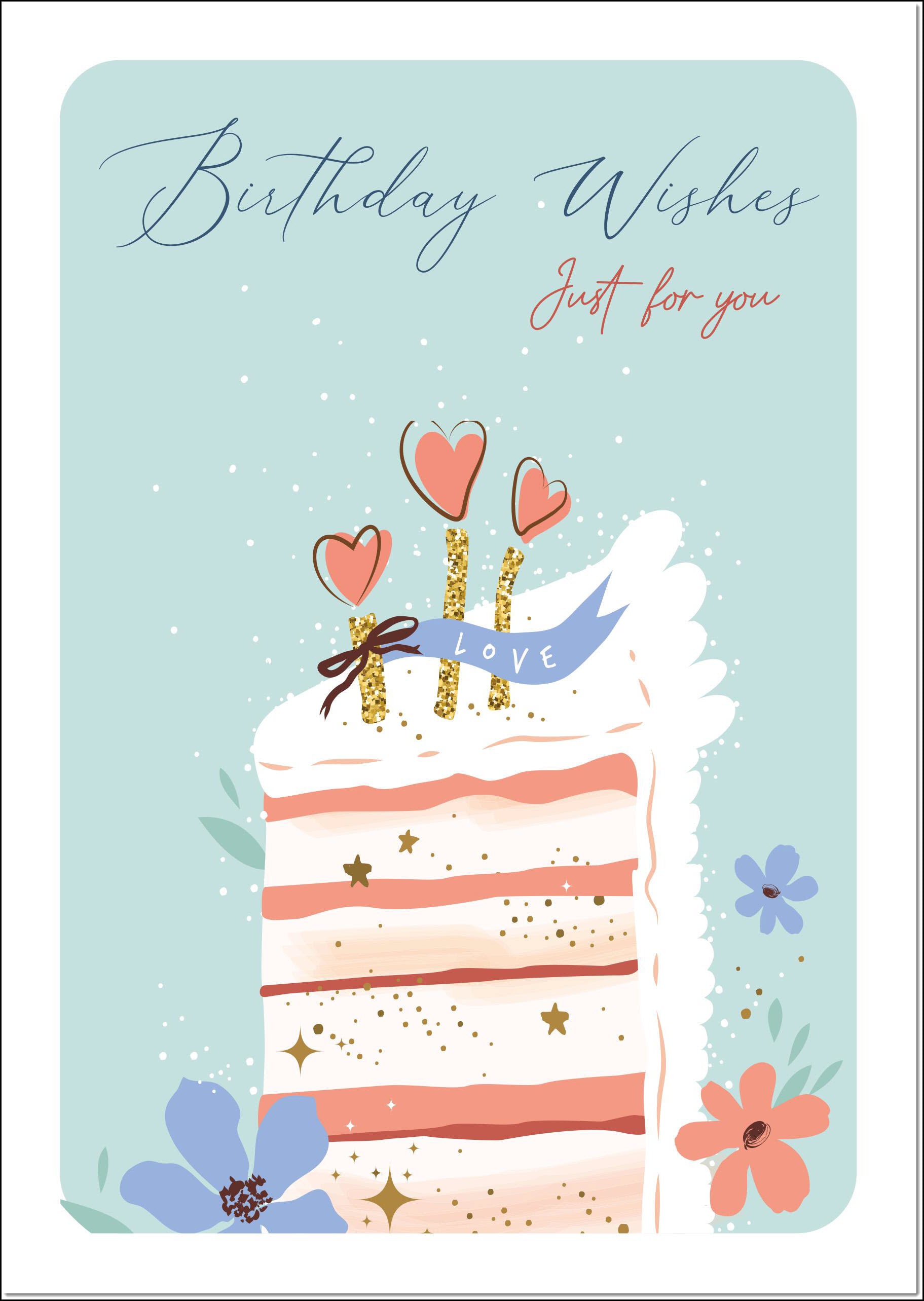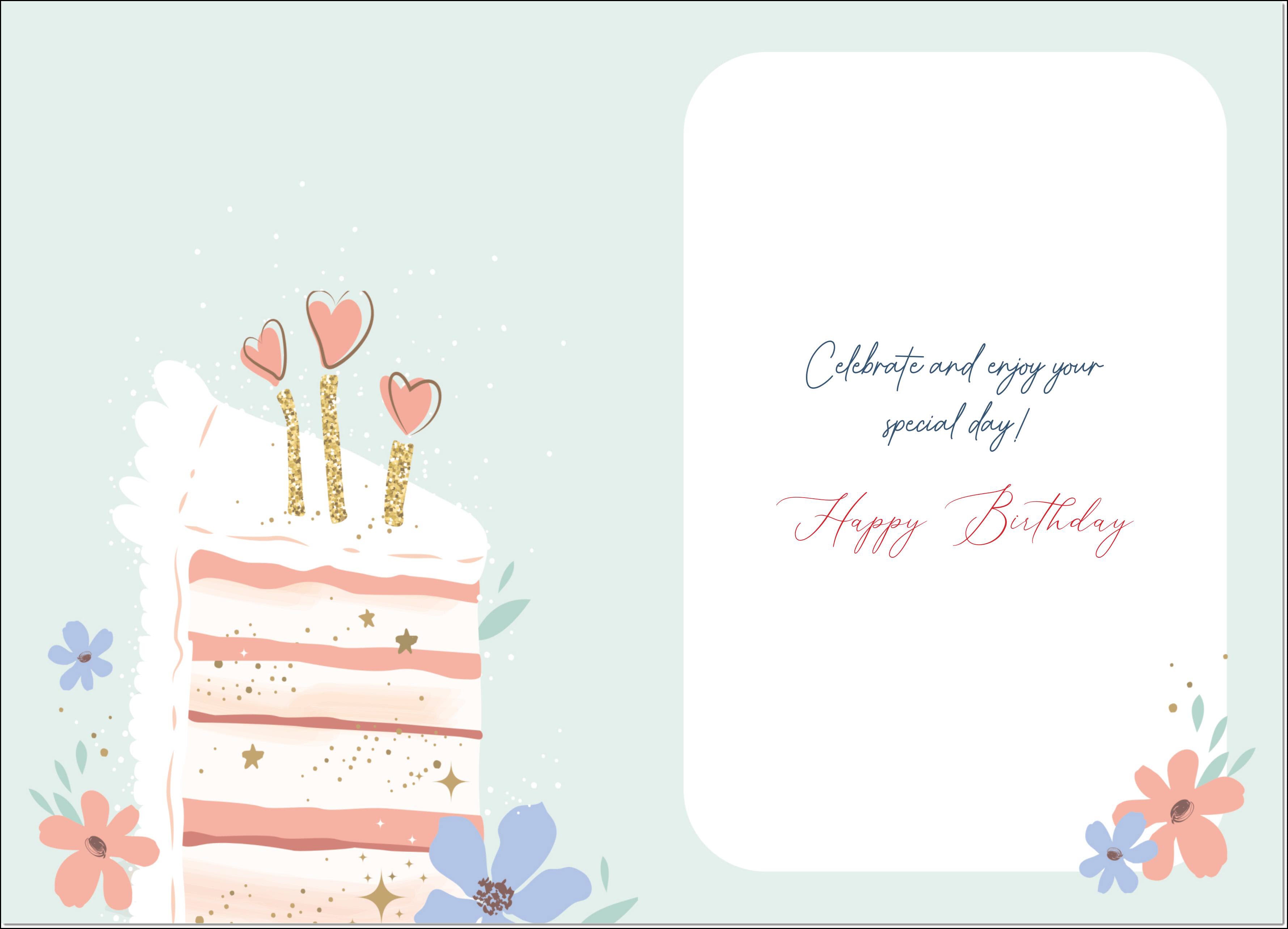 Birthday Card for Her Traditional Pastel Slice of Birthday Cake