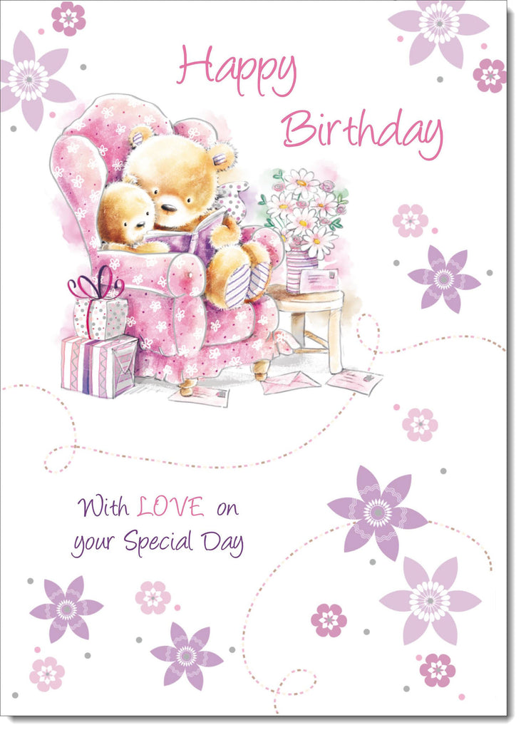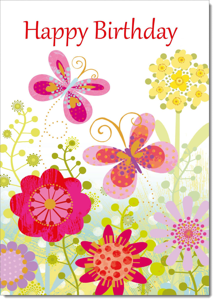 Birthday Card for Her Traditional Poppies and Blue Butterflies