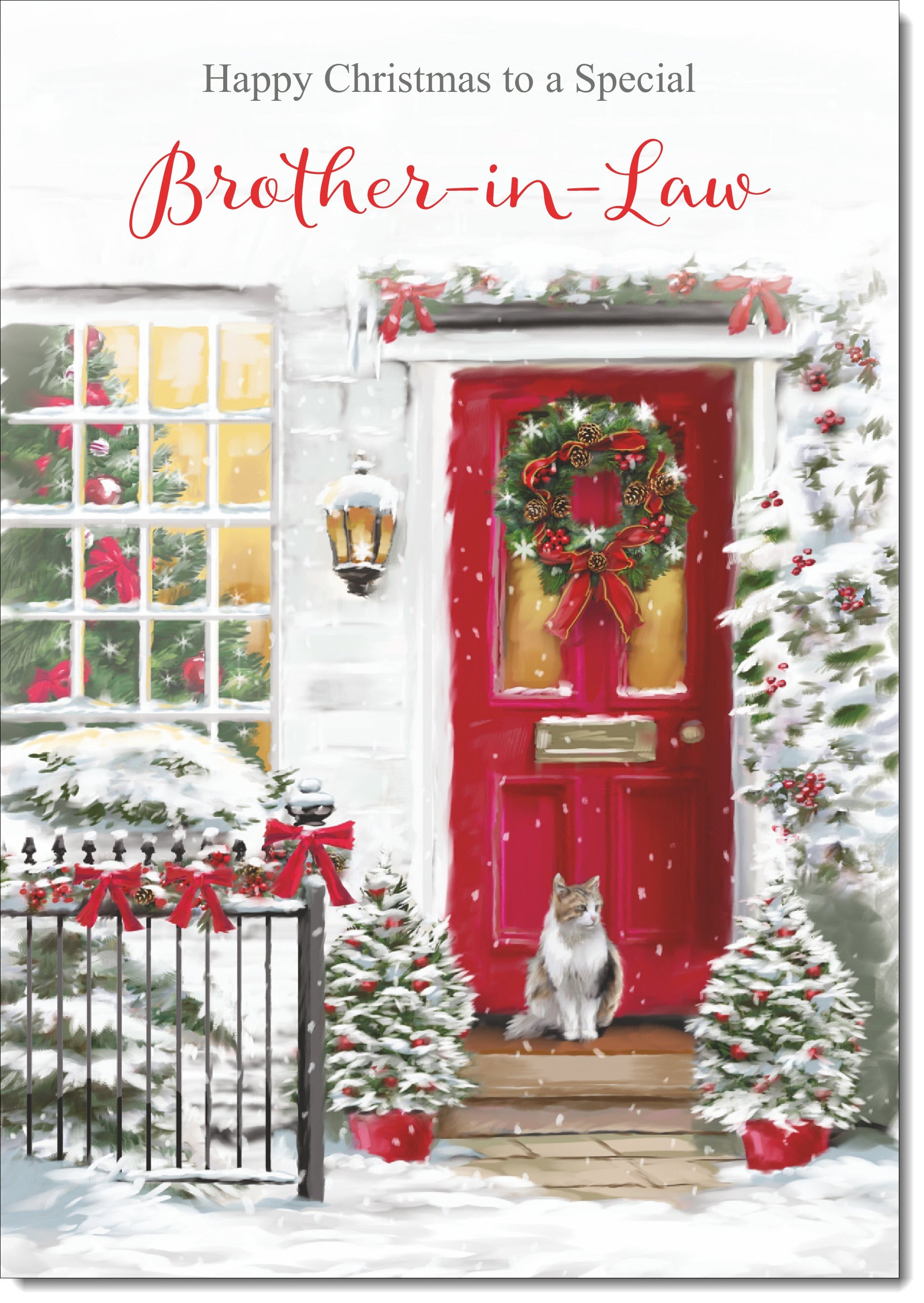 Brother-in-Law Christmas Card Cat by Snowy Red Door