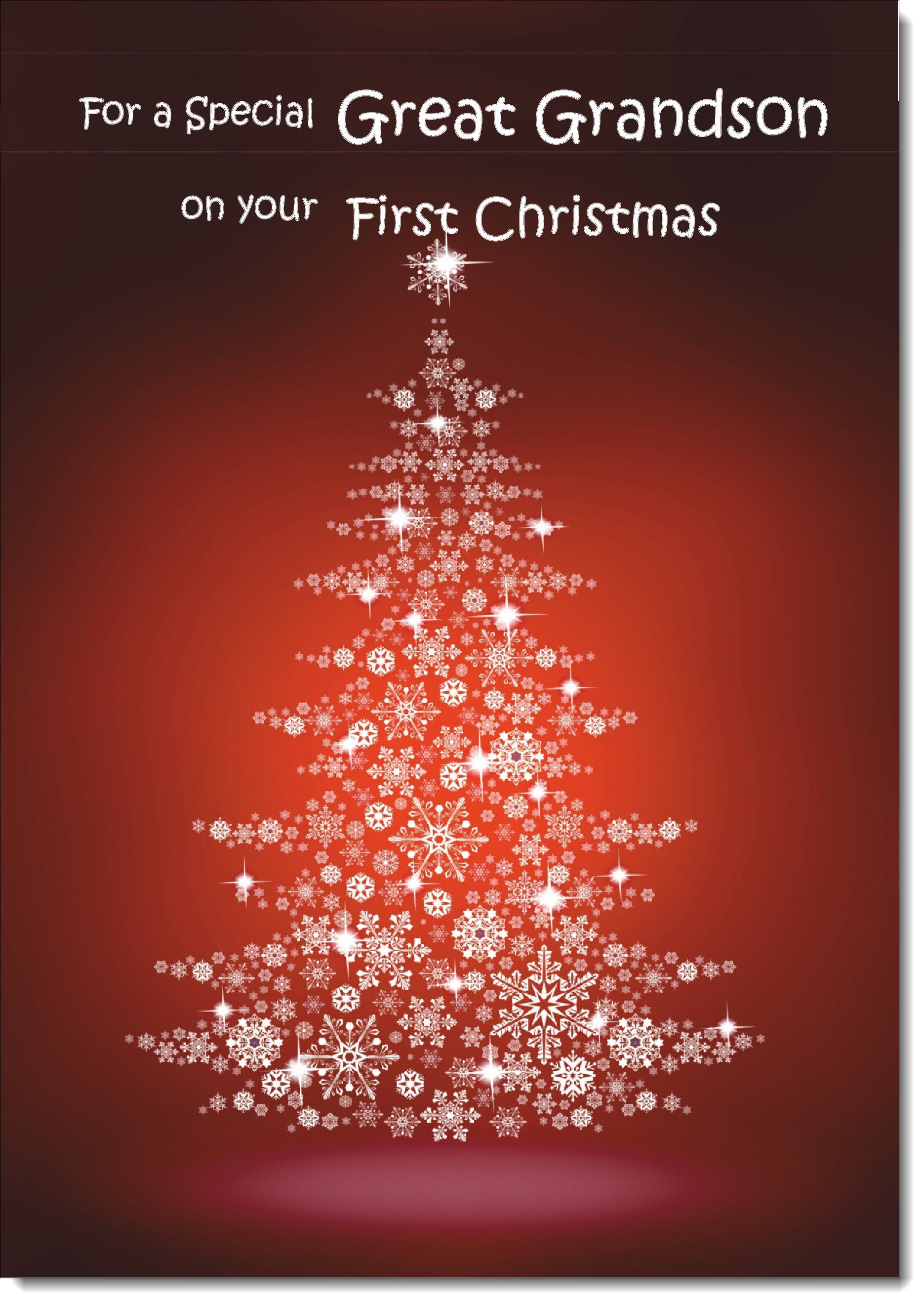 Great Grandsons 1st Christmas Card Red Snowflake Christmas Tree