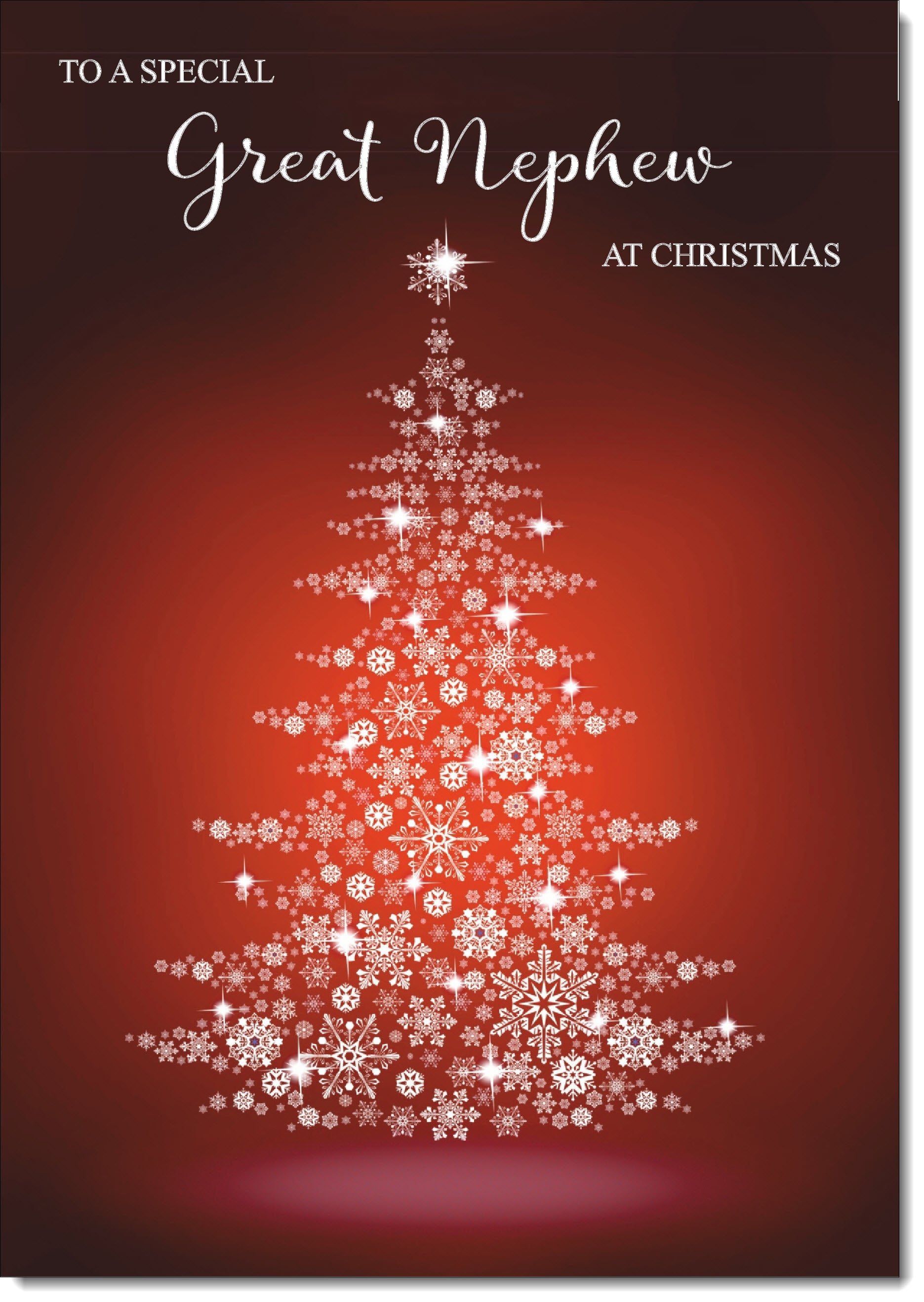 Great Nephew Christmas Card Red Snowflake Christmas Tree